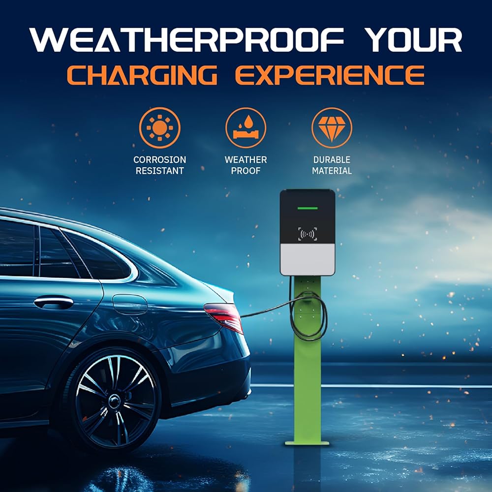 Weather-Resistant: Made from durable aluminum and coated with extra metal layers, this EVSE wall connector pedestal is rust-resistant and built to withstand any weather condition - from heavy rain to snow and extreme temperatures - ensuring a long-lasting outdoor life.