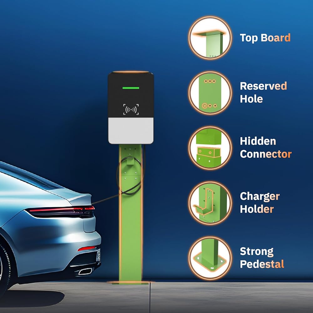 EVSE Wall Connector Pedestal for Tesla, Mounted EV Charging Station Stand, Electric Vehicle Charging Station EV Charger Pedestal Stand for Tesla Wall Connector Gen 2/3(Green)