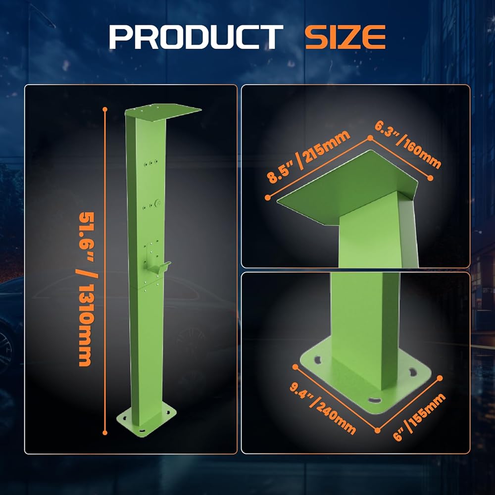 Tidy and Convenient: The EV charger pedestal provides not only a secure installation solution but also aids in keeping cords organized, creating a cleaner and more organized garage. In addition, the hook will securely hold the cable off the pedestal to prevent the it from kinking and getting tangled.