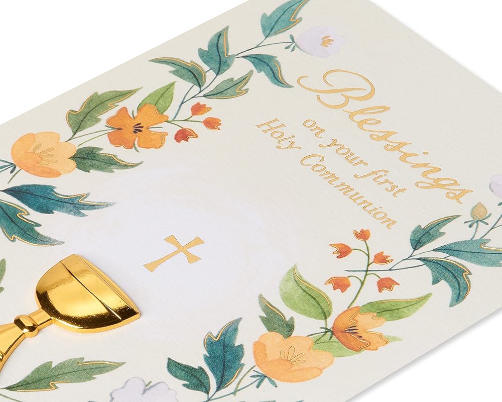 Celebrate their confirmation with a congratulatory card by Papyrus. This card features a lettering design in green, silver, and gold with metallic foil and dimensional paper attachments. The message inside expresses a beautiful religious wish that is suitable for anyone making their confirmation. Help them mark this important milestone with a lovely card by Papyrus. Includes envelope. Extra postage may be required.