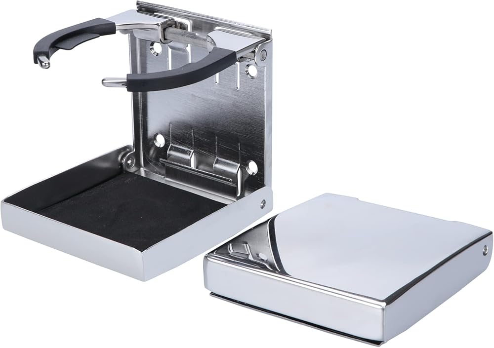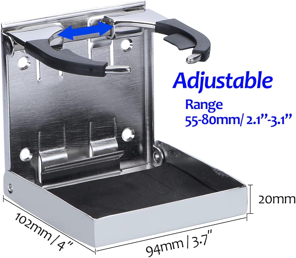 The folding cup holder for boat provides stability to ensure that cups and other items don't fall or slide out while traveling.