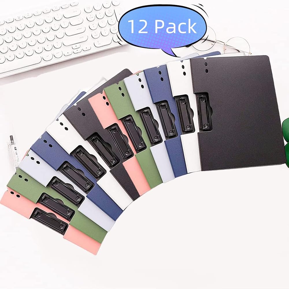 Clipboard - A4 Binder Punchless with Clips, File Folder Clip Boards 8.5x11, Nursing Clipboard for School,Office and Home,Clipboards with Storage for A4 Size or Letter (6 Colors), 12 Pack