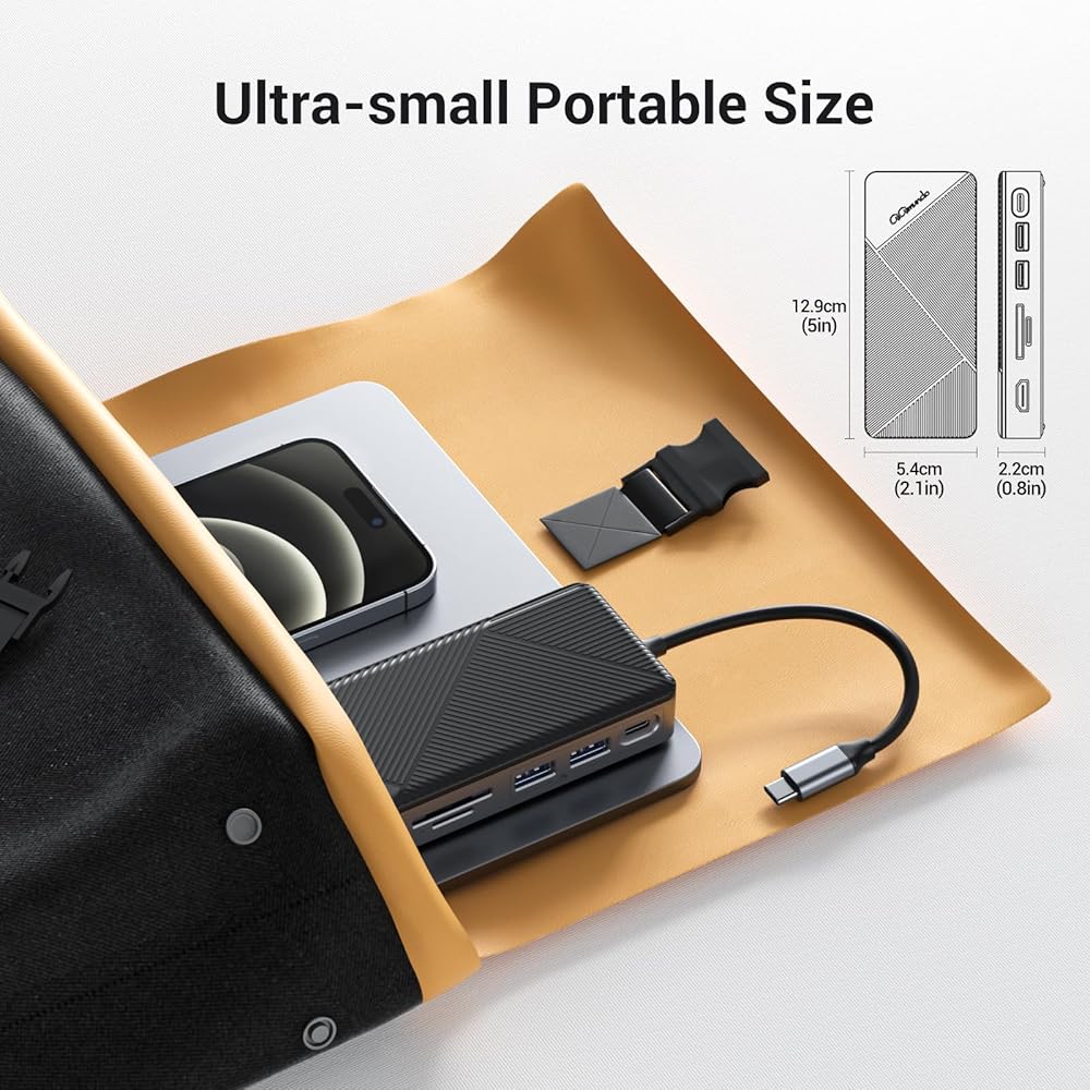 Handy for Easy Carrying - Size small, xxxinch, lightweight for just ounces. This docking station uses a 0.65ft USB-C signal source input cable, which is non-detachable, never encounter cable losing messes. Sturdy and handy, making it easy for your business cruise.