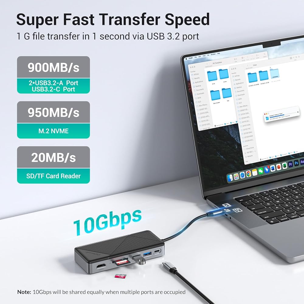 4K60Hz Video Output - Enjoy vivid UHD pictures output with the HDMI 2.0 port, making viewing movies and editing videos smoother. Please ensure your device has a USB-C interface that supports DisplayPort Alt Mode before purchasing.