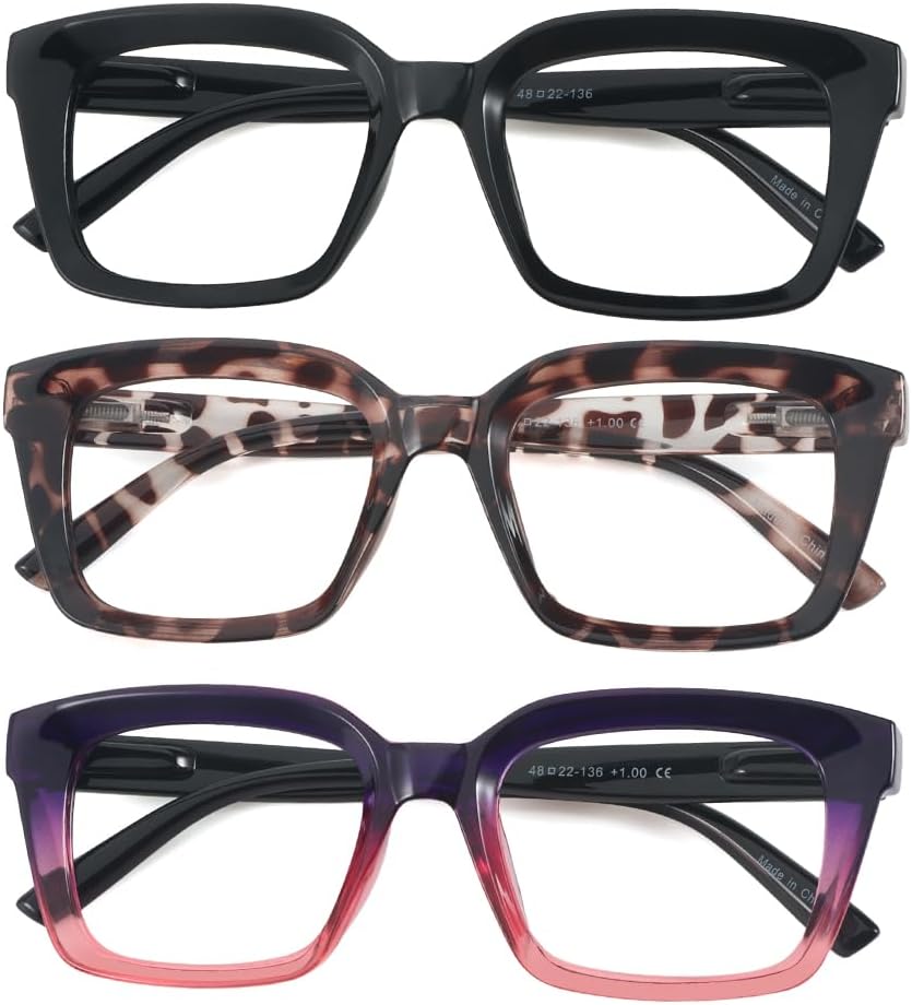 2020 VentiVenti 3 Pack Reading Glasses for Women Computer Readers Square Oversized Anti Blue Light with Spring Hinge
