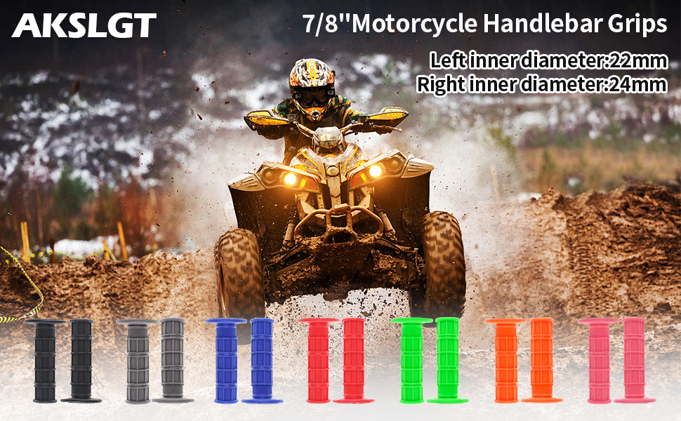 【Easy to Install】ATV 7/8" handlebar grips designed specifically for the installation of motorcycles, it is easy to install it , 22mm caliber on the left is sleeved on the clutch, and 24mm caliber on the right is sleeved on the throttle.