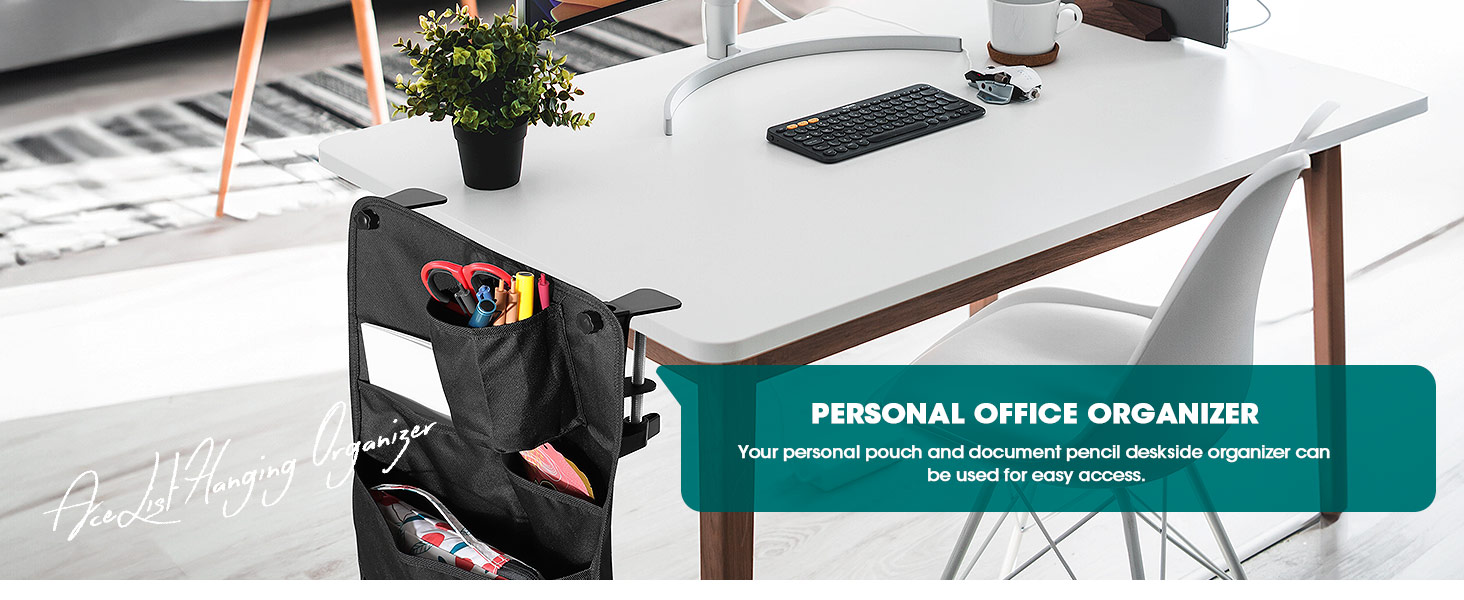 AceList Hanging Desk Organizer, Versatile Desk Cup Holder Clamp with Hanging Storage Bag - Convenient Tableside Cup Holder and Organizer for Home Office, Dorm Rooms, and RV