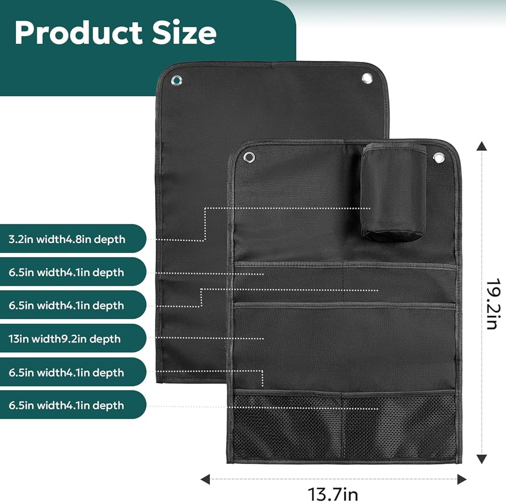 Spacious Hanging Storage Bag - Crafted from top-notch 600D Oxford fabric, our hanging storage bag is durable, odorless, and features 6 pockets to store all your necessities. Keep your phone, textbooks, files, magazines, eyeglasses, iPad, and snacks within easy reach, ensuring a clutter-free workspace.