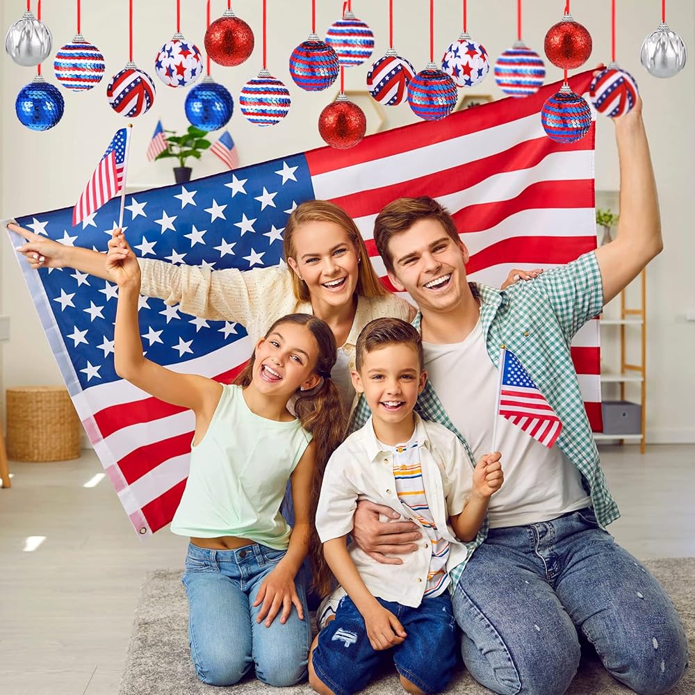 Thinkday 12 Pcs Independence Day Ball Ornaments Independence Day Decorations 1.97 Inch Sequin Hanging Ball Decor with Rope Red White Blue 4th of July Tree Ornament for Patriotic Party Supplies