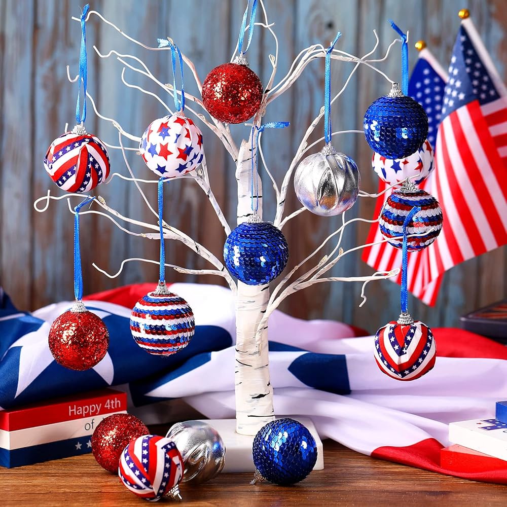 Ideal Party Decorations: you will receive 12 pieces of Independence Day ornament balls in 6 different styles, 2 pieces for each style; Sufficient quantity and style options will satisfy your decoration needs for Independence Day party, making your home full of festival atmosphere
