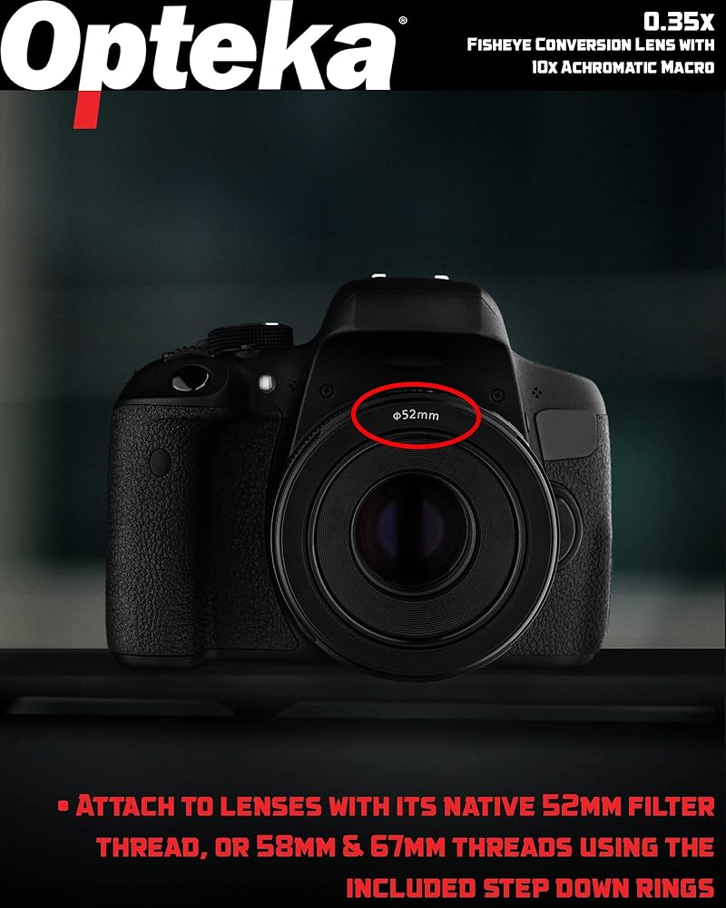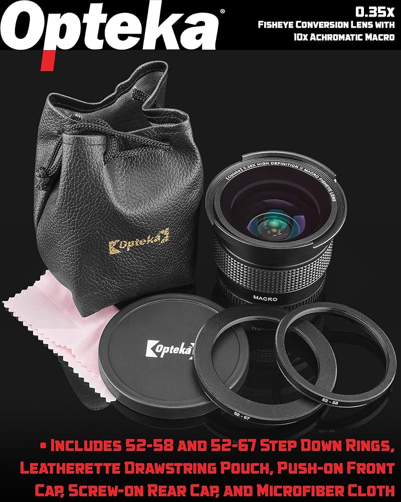 - Opteka .35x HD2 Super Wide Angle Macro Fisheye Lens. Direct 52mm mount; Adapters for 58mm & 67mm included