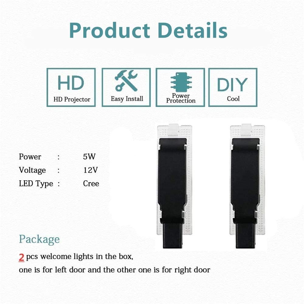 3.【Easy to install】:Please Direct Replacement. No modifications required.Note: make sure your car has original door light at first when you want these logo lights for replacement lights.
