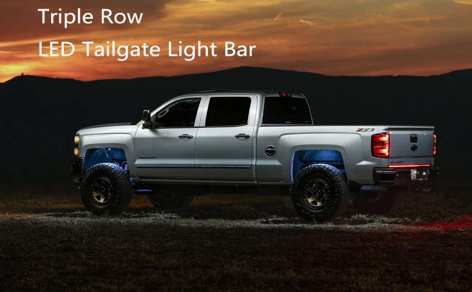 【Bright Light】:The Led truck tailgate light bar strip triple row with 432 pcs 2835 SMD led chips gives out super bright beam,can better ensure your security on the road.