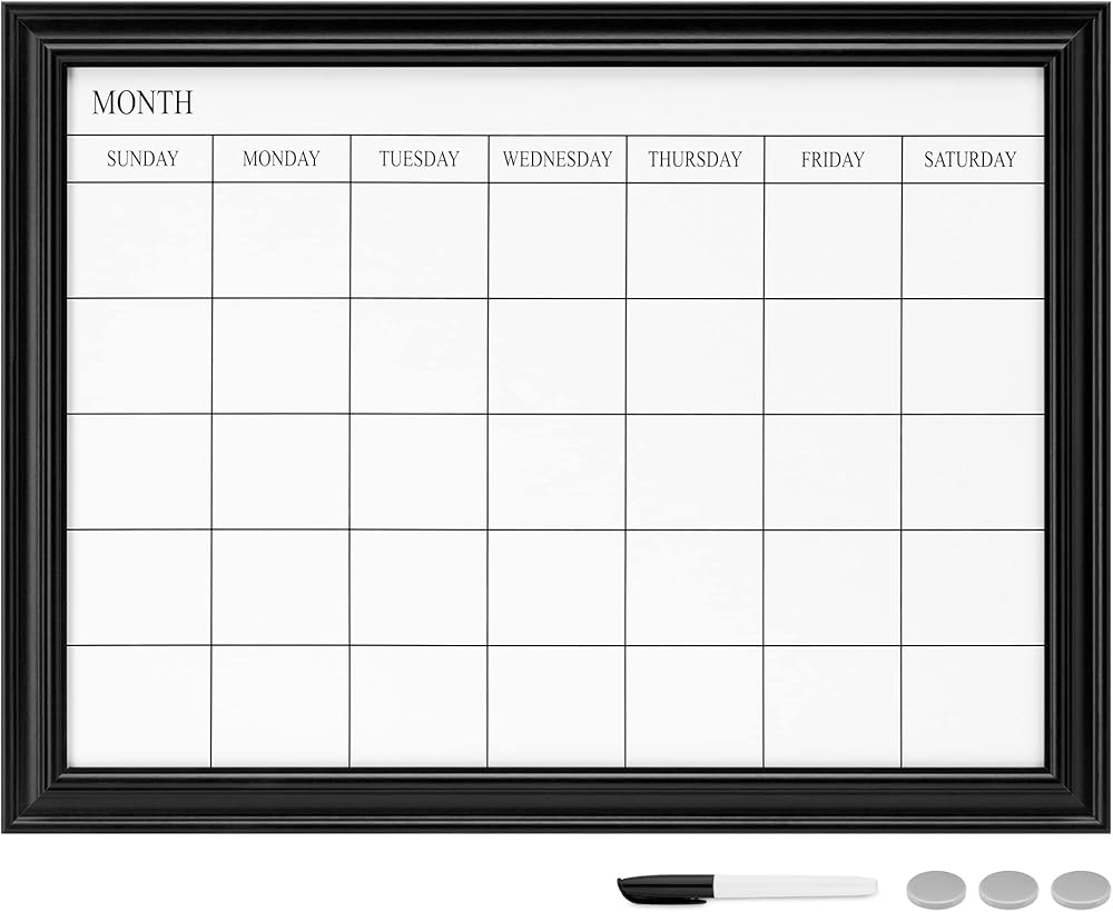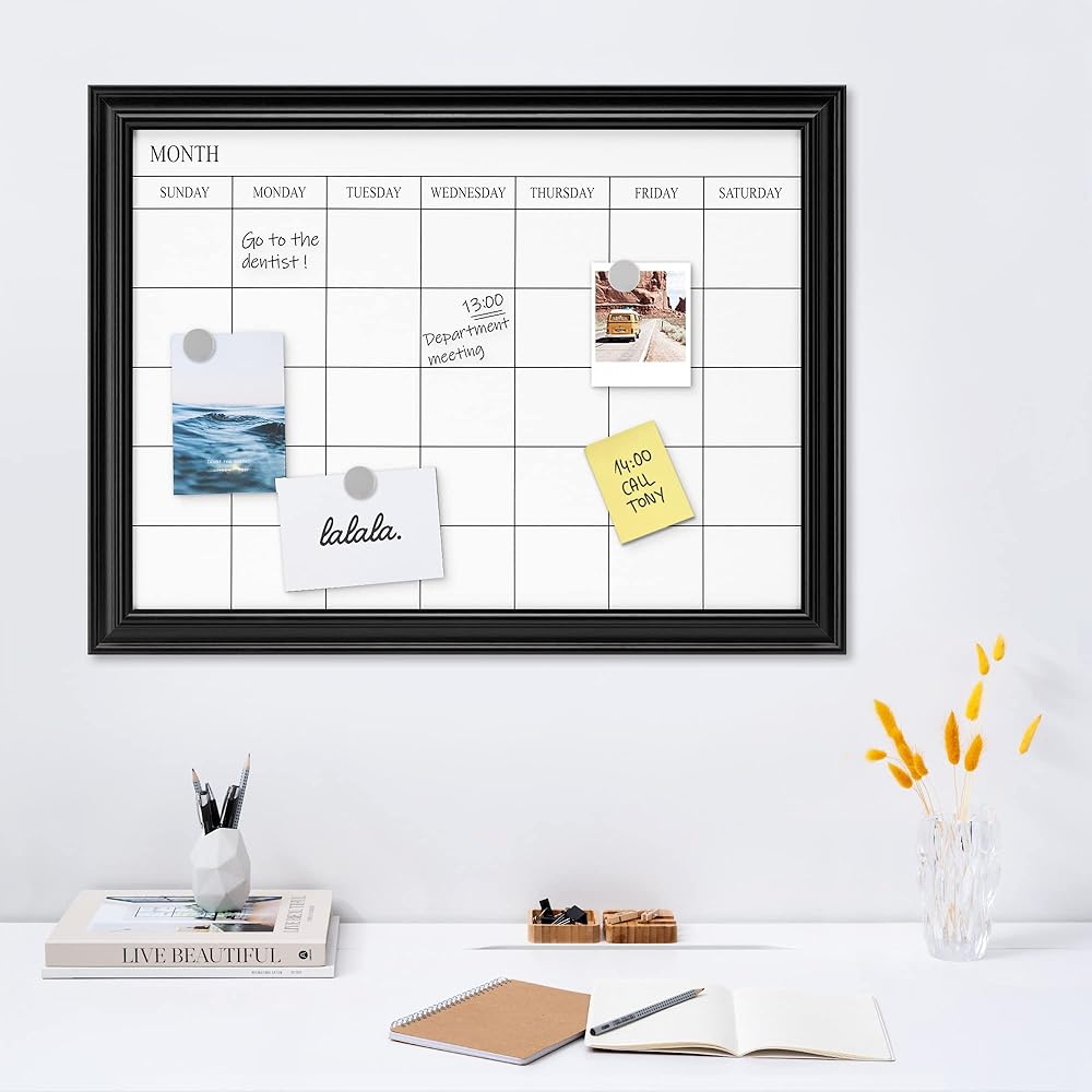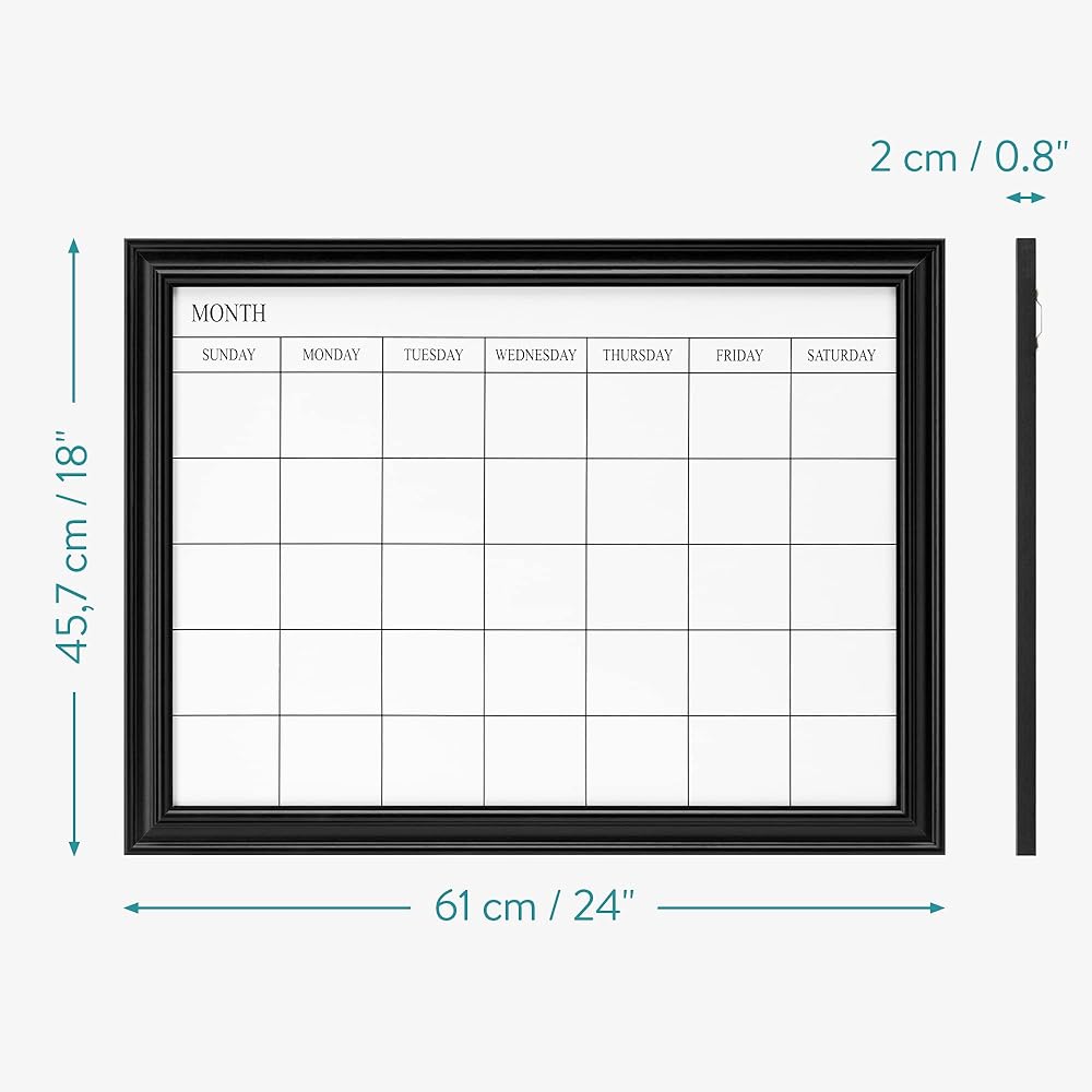 GET ORGANIZED : Bring order and flexibility to your planning with a monthly calendar whiteboard by Navaris. Easily write and erase weekly and monthly plans as needed. The surface is also magnetic for attaching notes, receipts and papers.