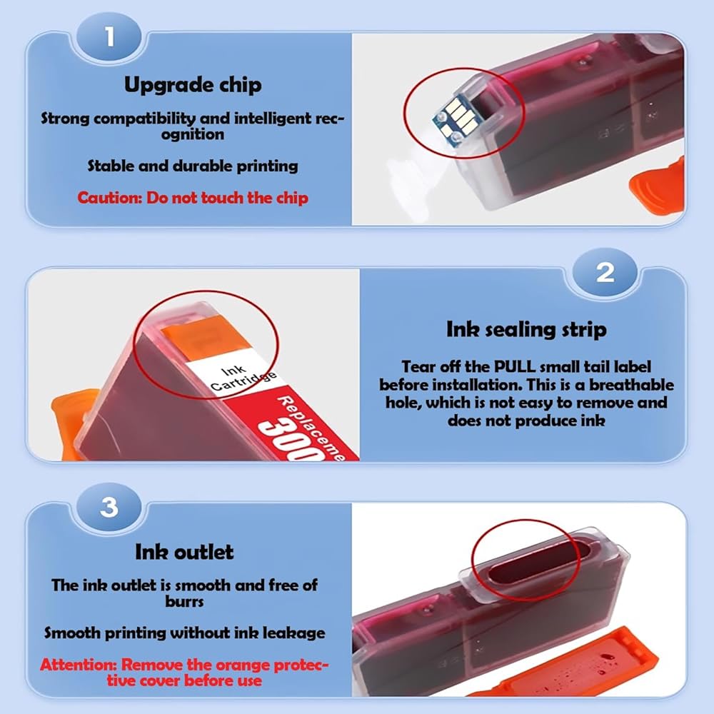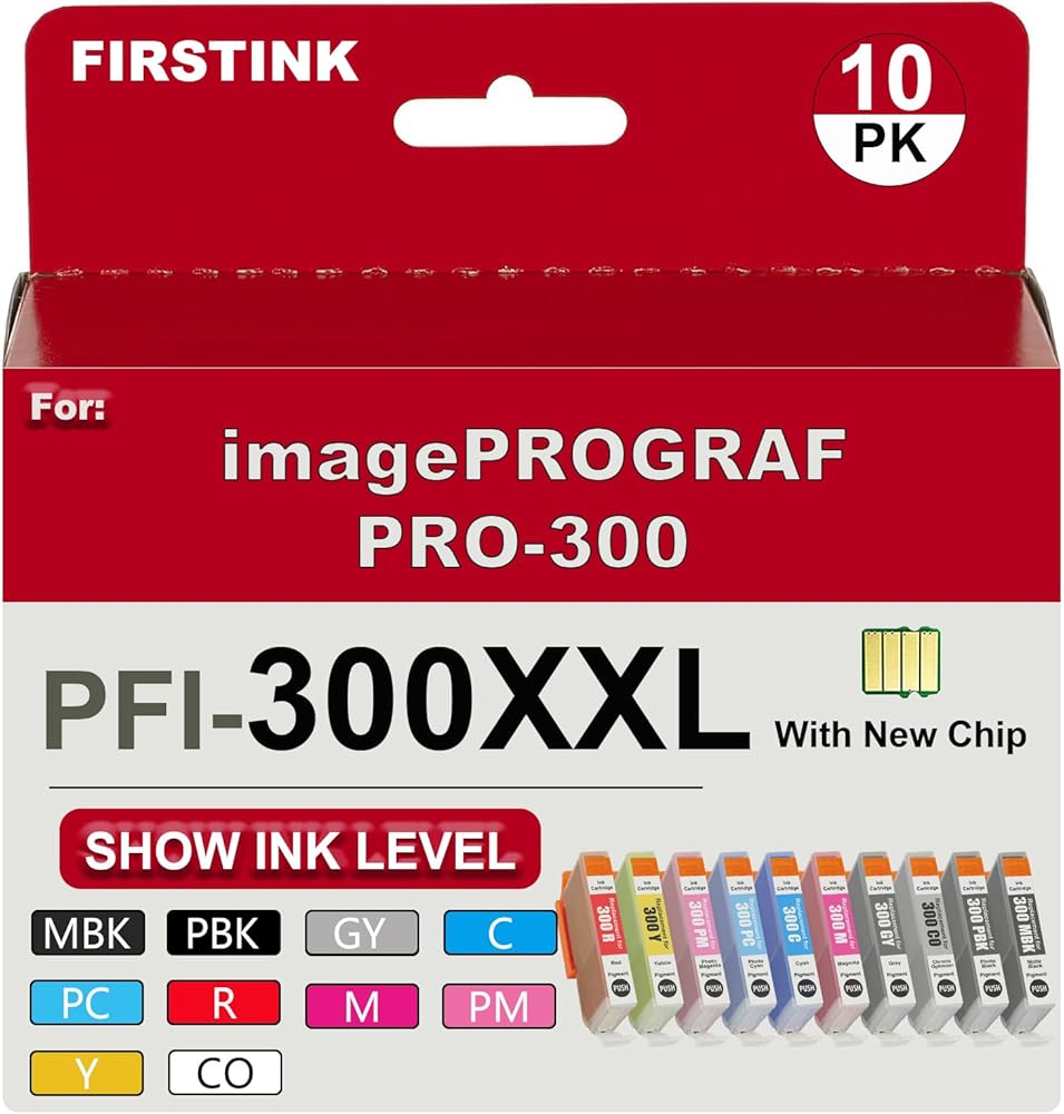 【Ink Volume】: 15 ml. (FIRSTINK's PFI-300XXL ink cartridge displays ink levels, and many of these products on the market do not display ink levels. Our product uses a new type of chip and can display ink levels, making it easier for you to use the product and improving your work efficiency.)