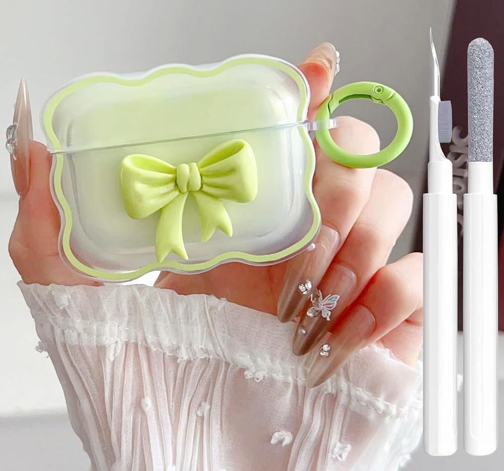 Cute AirPods Pro 2/1 Gen Clear Case, Girly 3D Bow Design Soft TPU Protective Shockproof Kawaii Apple iPod Pro 2nd/1st Generation Cover with Cleaner Pen & Keychain Girls Women 2023/2022/2019