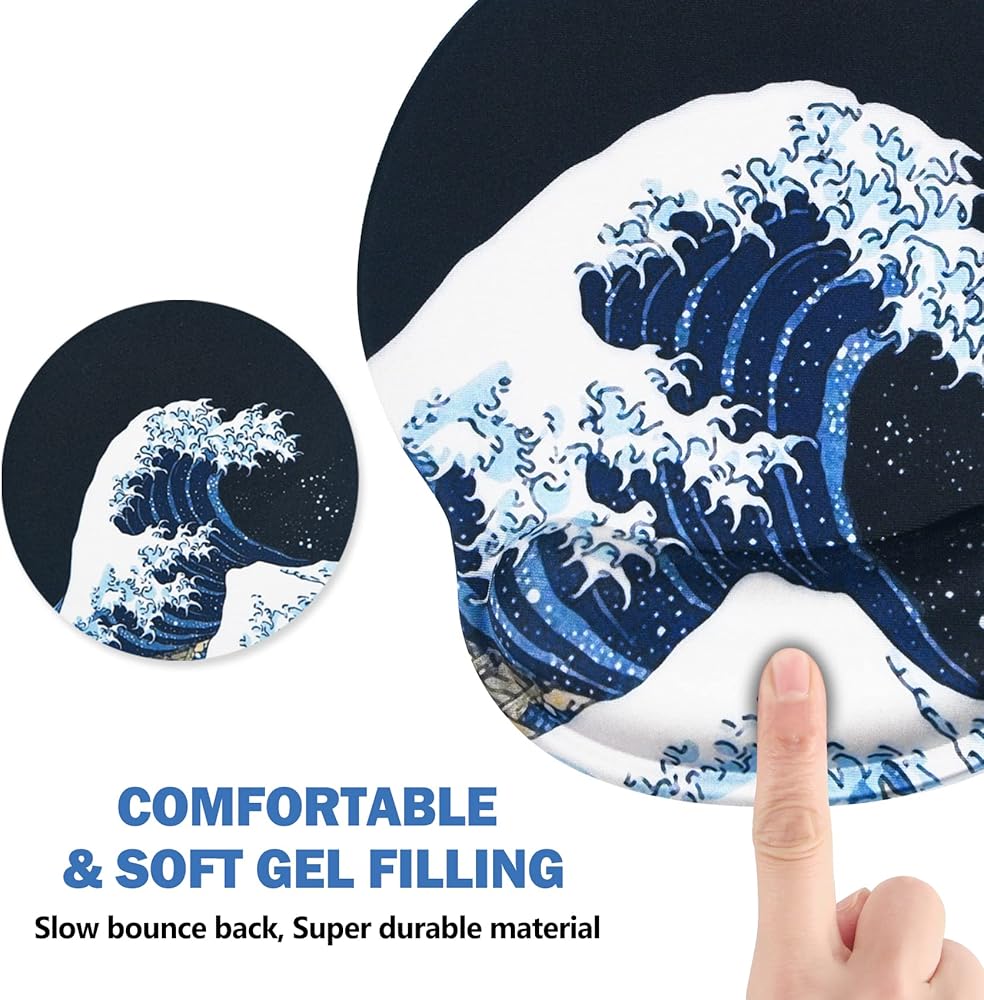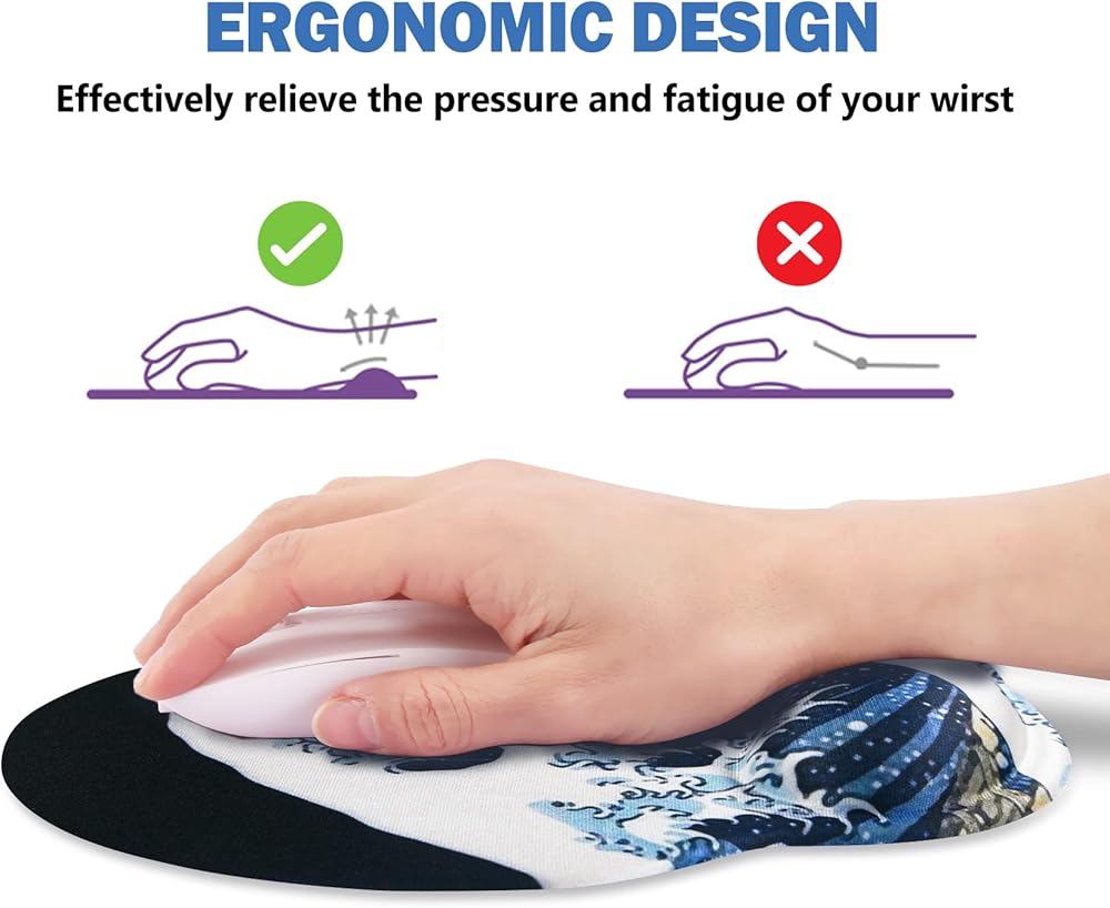 Ergonomic Design. AIMSA wrist rest mouse pad with raised ergonomic soft memory gel-filled design, provide a soft support to relieve the pressure, fatigue and pain of your wrist. Keep wrist comfort and normal circulation of the blood, have a good prevention effect for the current popular mouse hand.