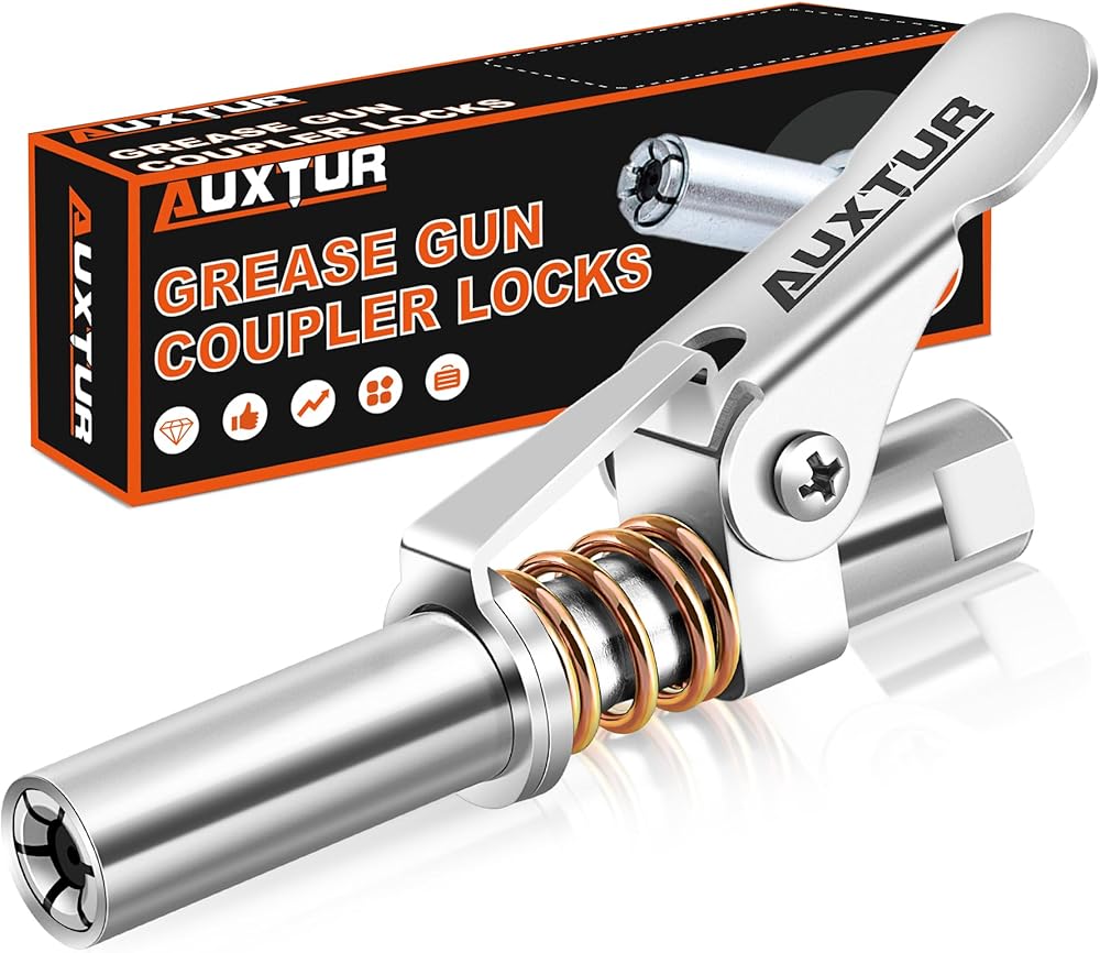 【Fast locking and robust】: AUXTUR grease gun coupler is made of high quality galvanised alloy steel and can be used all day in the workshop or garage for smooth locking and lubrication without popping out and without leaks. There is no excess grease spilling all over the machine, saving a lot of grease and time cleaning grease from the equipment.