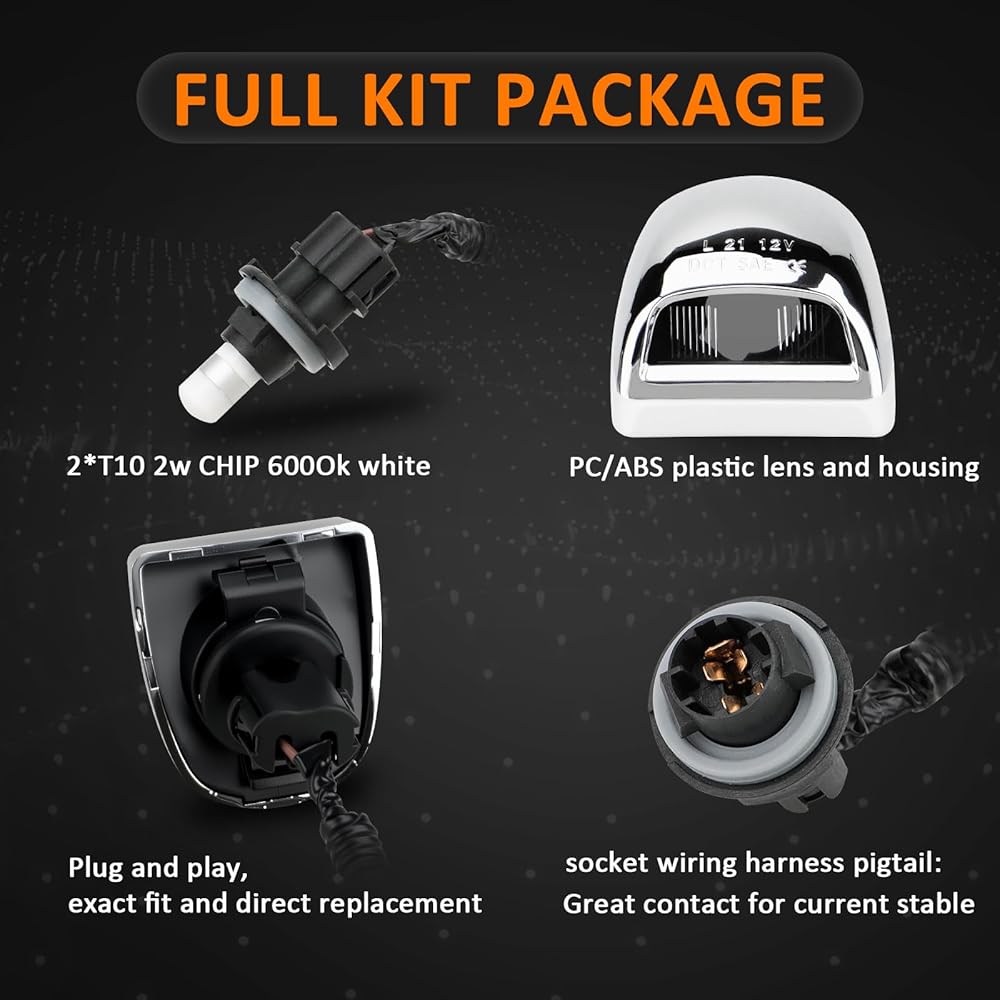 ✅ 【[Fully Plug & Play】: Plug and play, it only takes a few minutes to install. The model is the same as the original car, directly install and replace the original car license plate light. The wiring harness socket combine wire and socket function for easy connection.Come with wiring harness socket that integrate wiring harness and socket into 1, simplify installation, high quality harness terminal, not easy short out and corrosion.