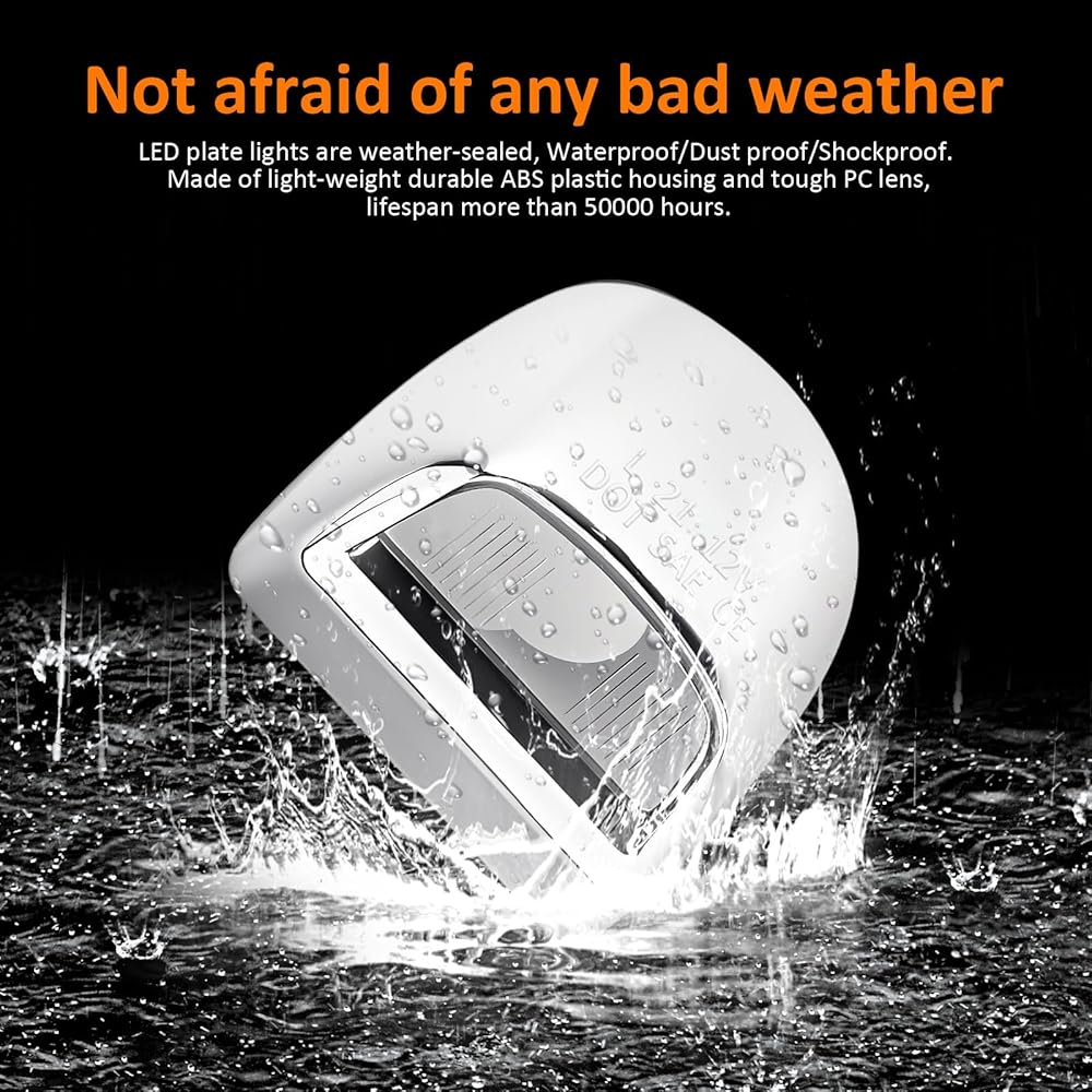 ✅【High Quality】:Made of high-quality ABS shell and PC lens to ensure long lifespan, IP67 waterproof and ultra-durable, low power consumption and energy saving.Built-in high-power SMD LED chip. The luminous purity is high, the penetrating power is strong, and there is no need for lampshade filtering, and the license plate light greatly improves the visibility of the license plate.