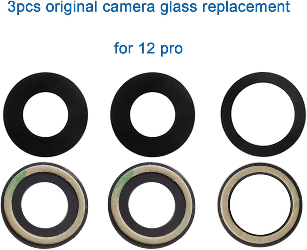 OEM new original rear back camera glass lens replacement for iPhone 12 pro camera glass lens only , not fit for iPhone 12 pro max, there have 3pcs new camera lens in the package.please make sure the corresponding holes of the camera lens.