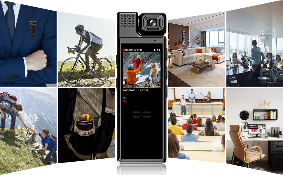 『Multi-scenario Application』The pocket body cameras have a back clip and 1/4 Screw Hole at the bottom, allowing you to wear it in a variety of ways. You can clip it securely to your pocket, writing tablet or mount it on the front of your bicycle. We include a tripod stand in the package, which can be used as 1080p webcam or youtube camera to support recording.