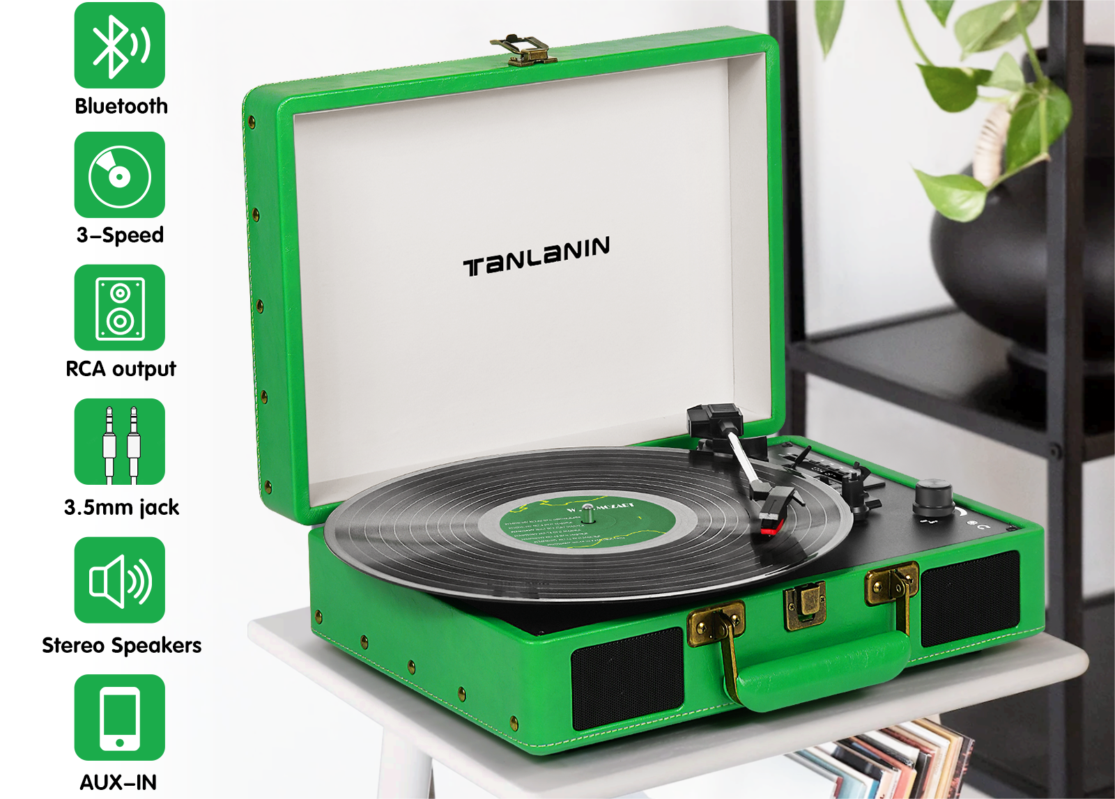 🎶 EXPANDED CONNECTION OPTIONS - Play your vinyl and stream music from your smartphone to the turntable's built-in Bluetooth speakers. Easily connect external speakers via the stereo RCA outputs or use the Line input for non-Bluetooth devices like a CD player. For personal listening, connect your headphones to the headphone jack.