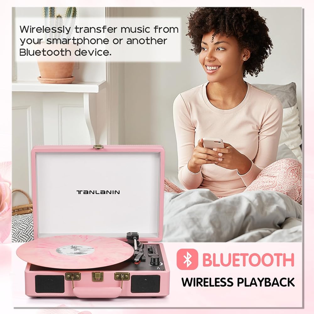 💿 3 SPEED BELT-DRIVEN TURNTABLE - This 3-speed (33 1/3, 45, 78 rpm) Pink Suitcase Record player features upgraded premium sound quality that has unique Anti-Vibration Technology to prevent skipping and protect your Vinyl Records safely. It is perfect for your living room, bedroom, or office.