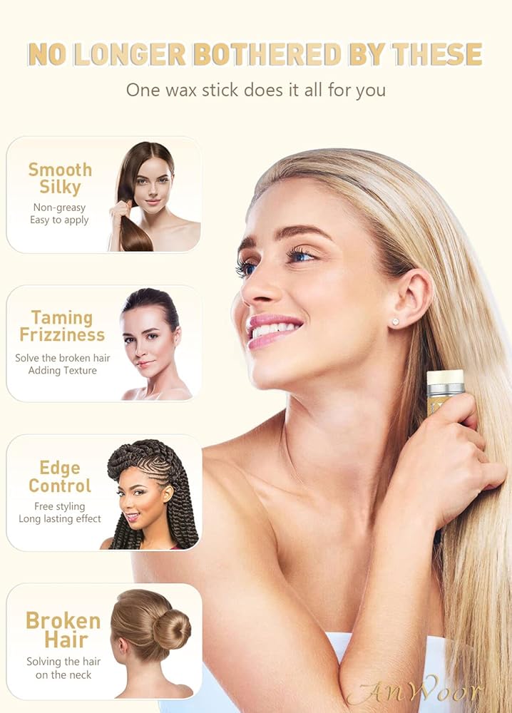 【Non-Greasy & No Residue】Our hair wax sticks are soft & delicate in texture, easy to absorb, easy to apply, no shedding, no frizz, no hardening, no greasy, no residue, leaving you with a more natural hair effect!