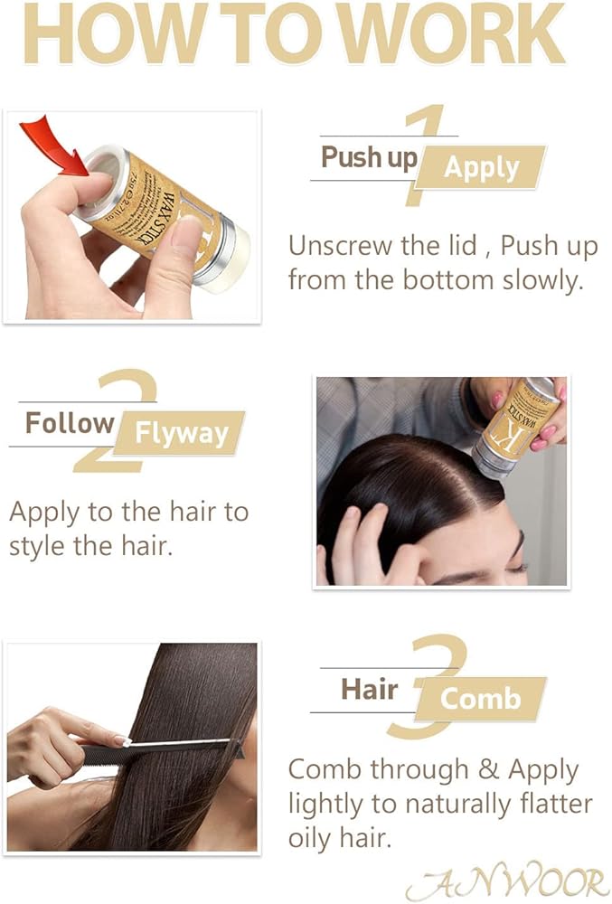 【Easy to Use】For short hair, use the hair wax stick to circle the entire hair and secure with your fingers. For medium length hair, apply the wax to the midsection & ends of your hair and style it with a comb or hand.