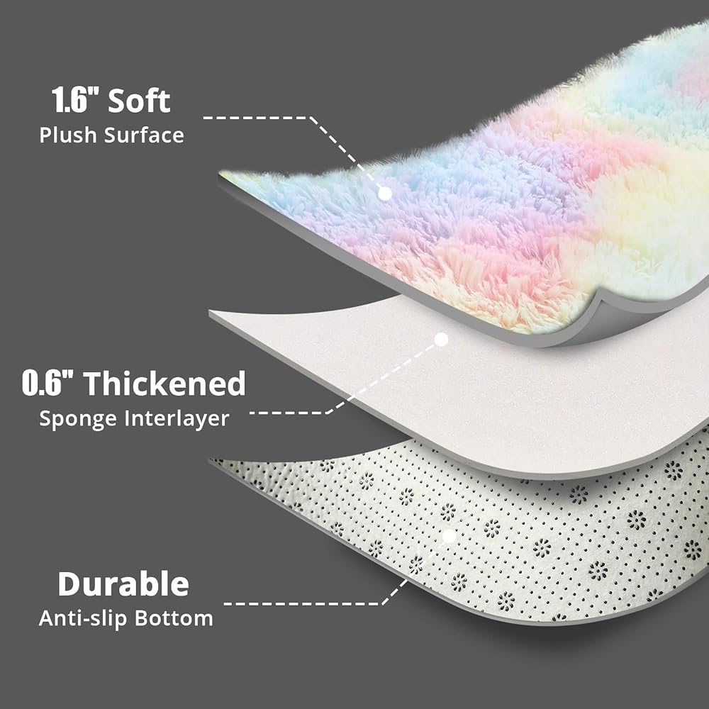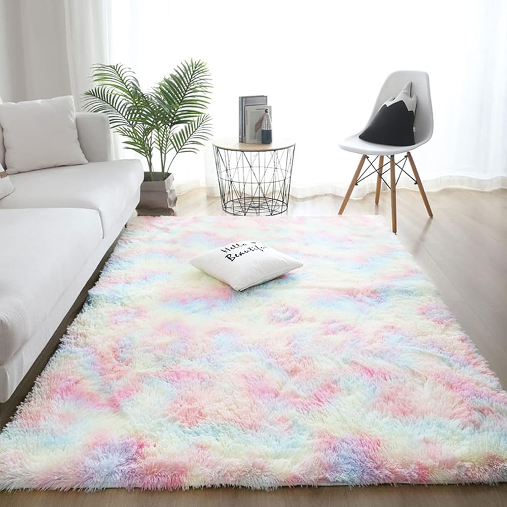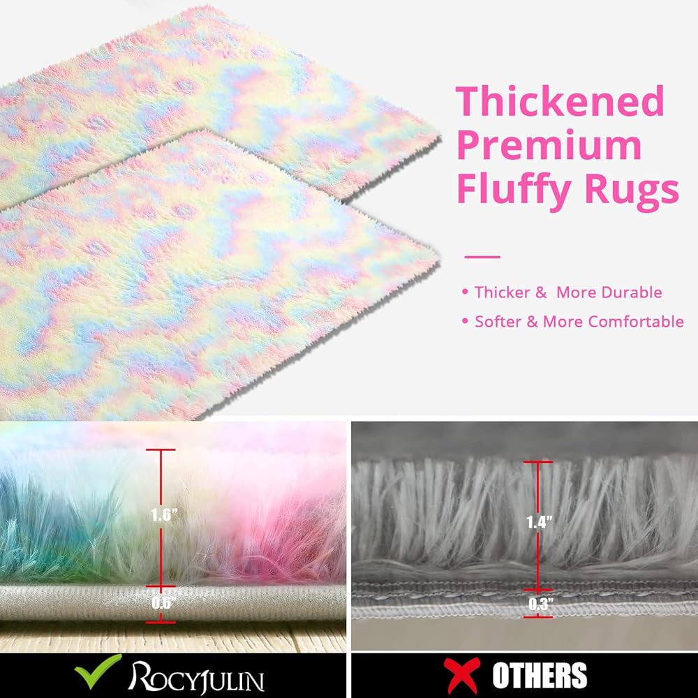 ROCYJULIN 6x9 Area Rug for for Bedroom, Ultra Soft Fluffy 6x9 Carpet for Living Room Non-Slip Shag Area Rugs Fuzzy Carpets for Nursery, Boys, Girls, Kids, Rainbow