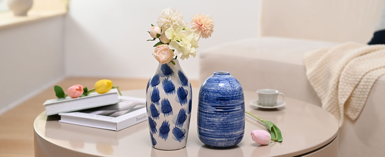 【Exquisite Craftsmanship】Made from quality ceramic, the vase set is glazed with exquisite craftsmanship making them more practical and durable to decorate your personal space.