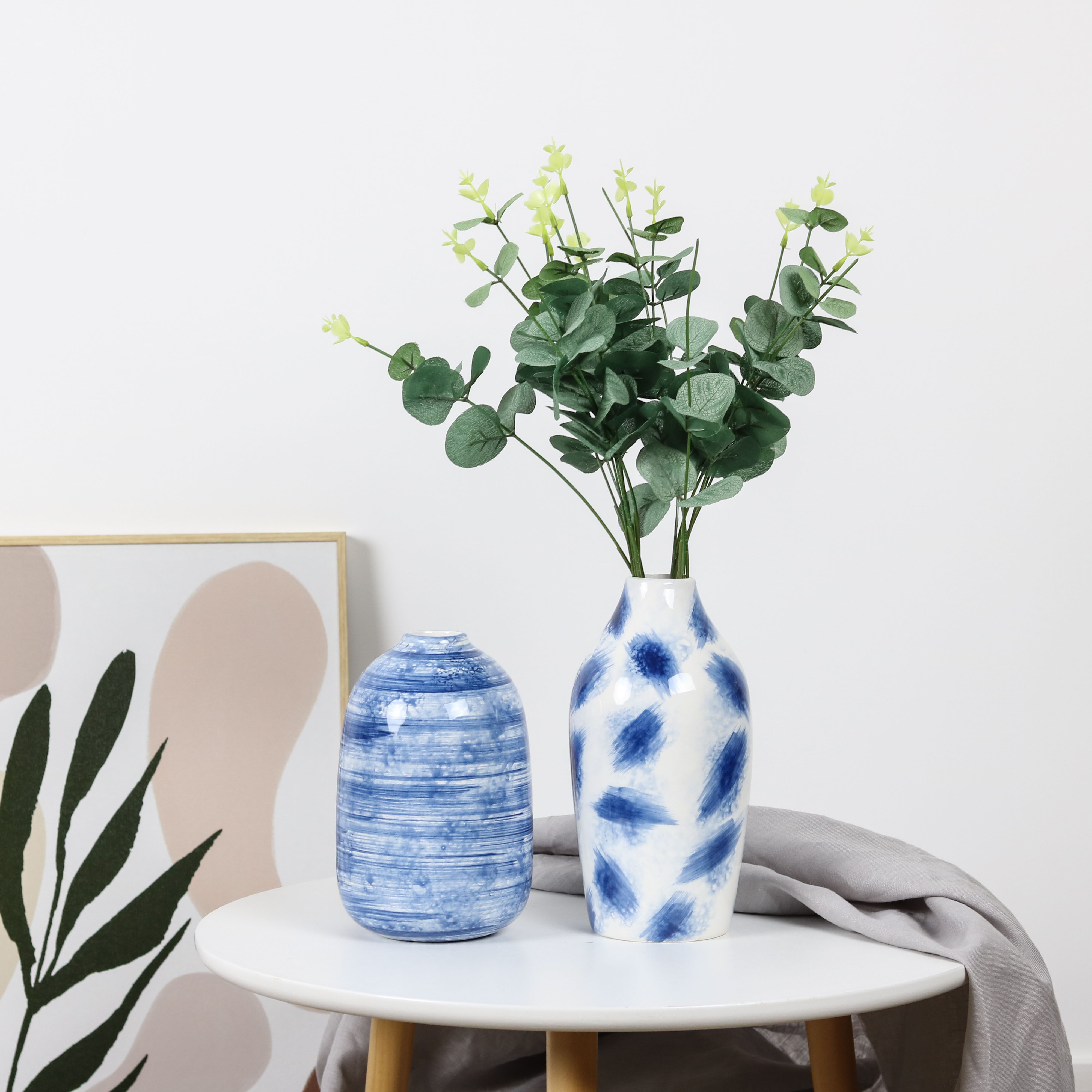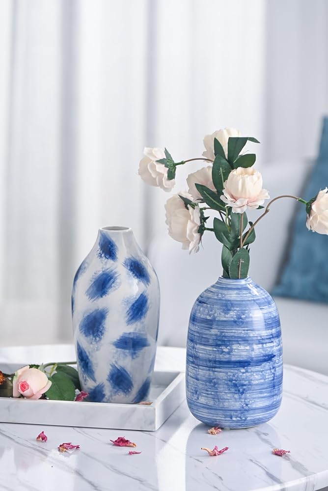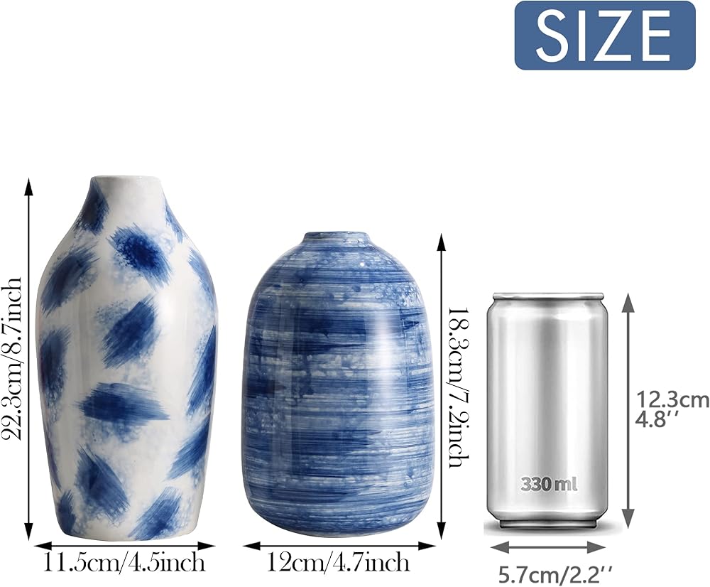 【Perfect Color】 This ceramic vase set features an eye-catching watercolor pattern in shades of blue on a white background, which would be the beautiful accent piece for your home