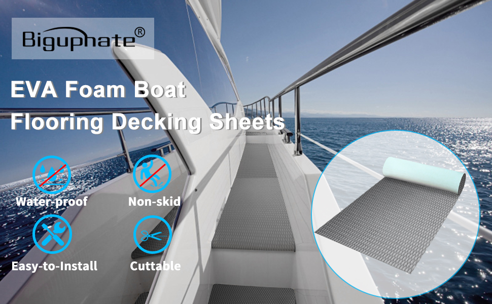 【 EVA Foam Boat Decking Flooring 】Product Size: 23 x 94 inches; Thickness: 6mm; Hardness: 55-60. This Faux Teak Floor Decking Sheet made of durable EVA material, has advantages of good cushioning, sound & shock absorption, heat insulation and moisture resistance; It isodourless, non-toxic, non absorbent, saltwater-proof, wear-proof, non-skid, weather-proof and not easily torn or damaged that ensures a long service time.