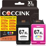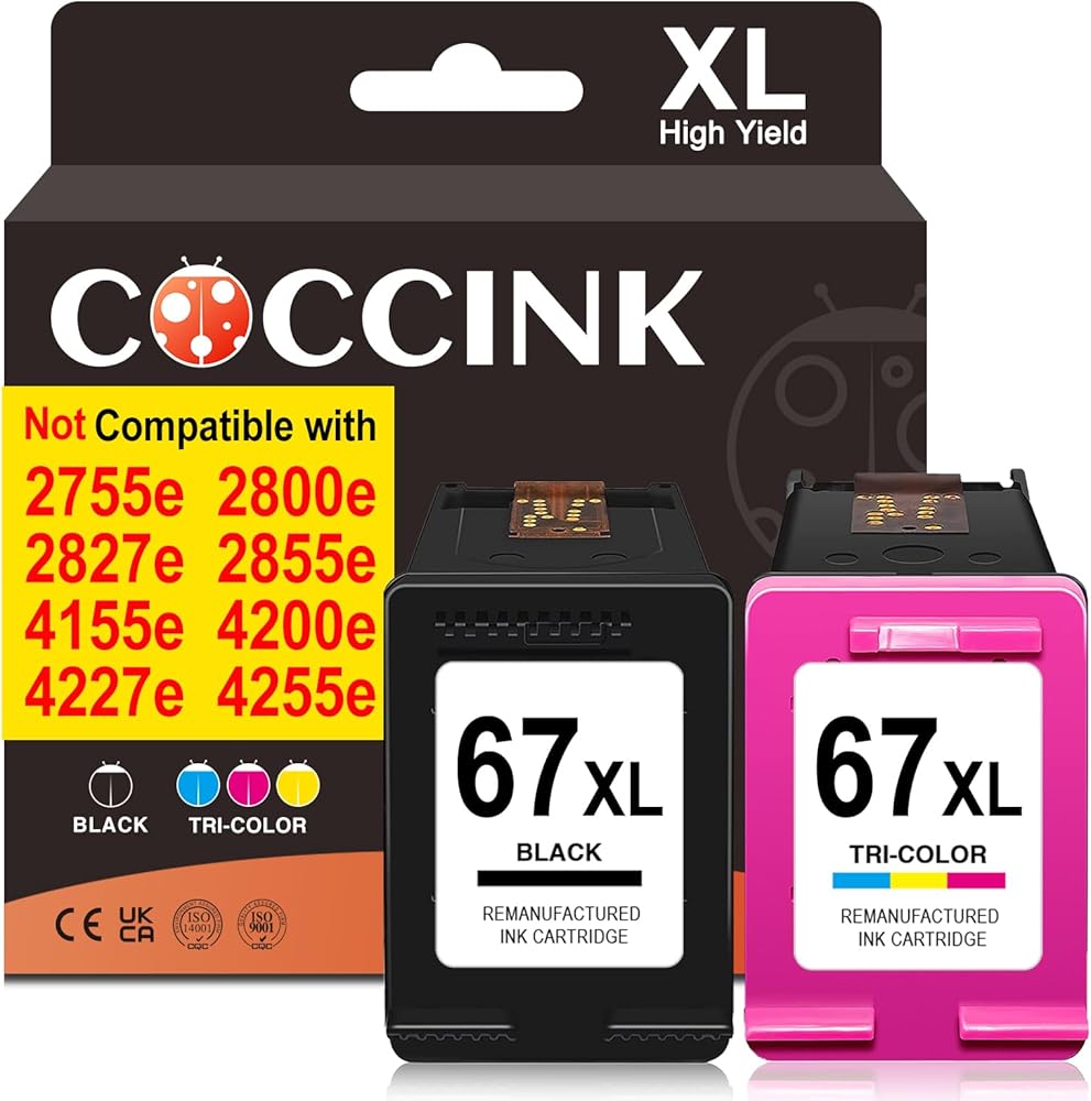 Package Contents:2 Pack of Remanufactured ink cartridge replacement for HP Ink 67XL (67/305 ink cartridges black color combo pack for euro) (1 black & 1 tri-color) combo pack.