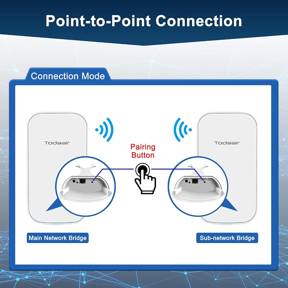 【One-click Pairing】:Successful pairing within 5 minutes. One-click smart pairing function, no need for computer, mobile phone and login page settings to easily complete point-to-point device pairing.