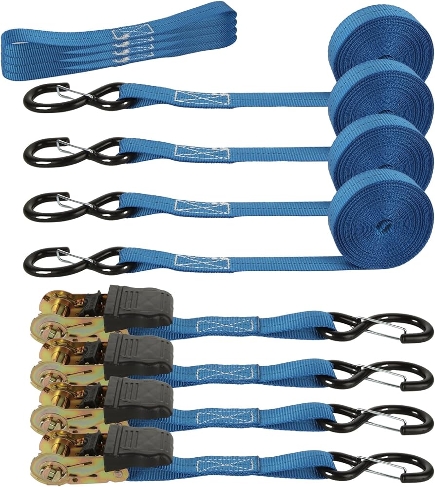【2In X 33 Ft Tie Down Straps】The 33 feet long and 2 inch wide of polyester webbing is easy to adjust the length, allowing you to firmly tie down large or small cargo, effectively preventing them from being damaged or dropped due to shaking and bumping