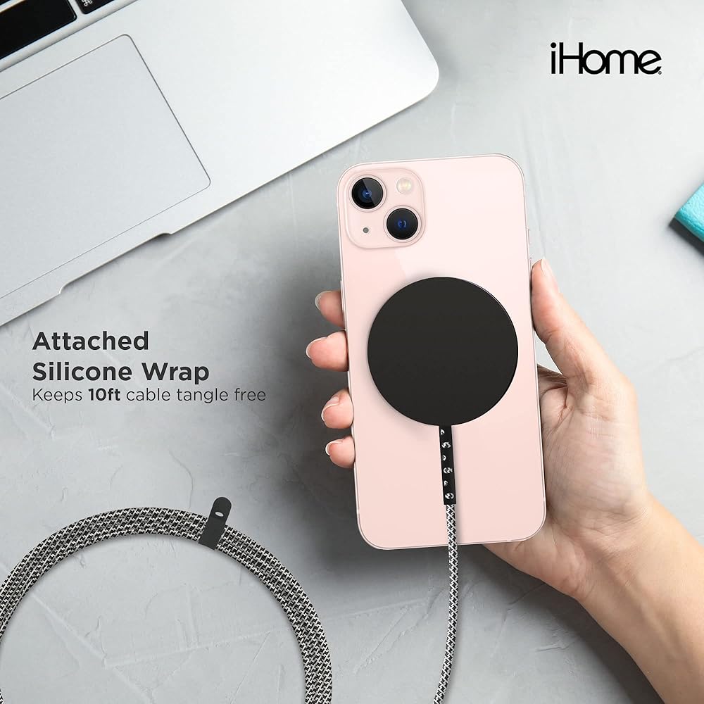 THE PERFECT SNAP EVERY TIME: Built-in magnets perfectly align with your iPhone to maximize your charge. Compatible with MagSafe Cases. 10W FAST WIRELESS CHARGING: Provides up to 10W wireless charge for compatible devices and snaps directly to the back of your iPhone 12/13 or compatible magnetic case. THOUGHTFULLY DESINGNED WITH SAFETY IN MIND: Sleek, aluminum design with a strain-resistant nylon braided cable for enhanced durability. Attached silicone wrap keeps the cable tangle free. SAFETY PROTECTION: Built-in safeguards like temperature control, and other comprehensive suite of protection that ensures safety while in use. UNINTERUPTED CHARGING: Charge and watch movies or play games in long lasting uninterrupted sessions.