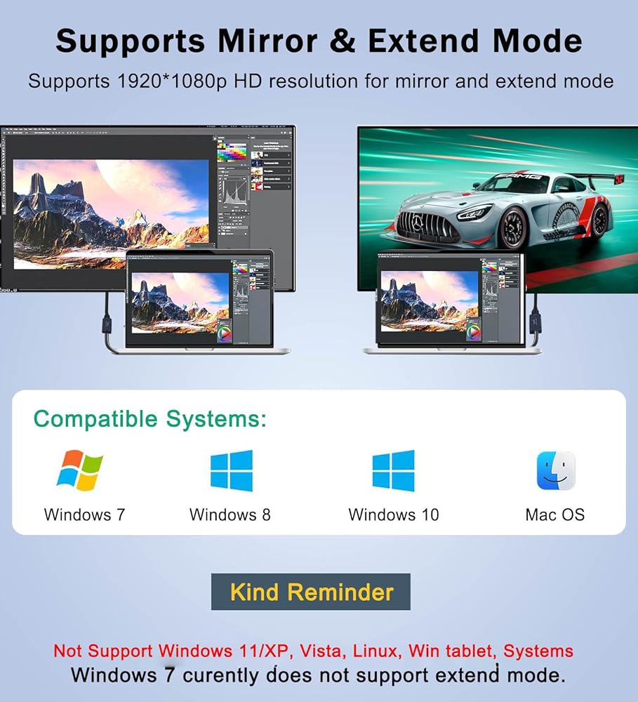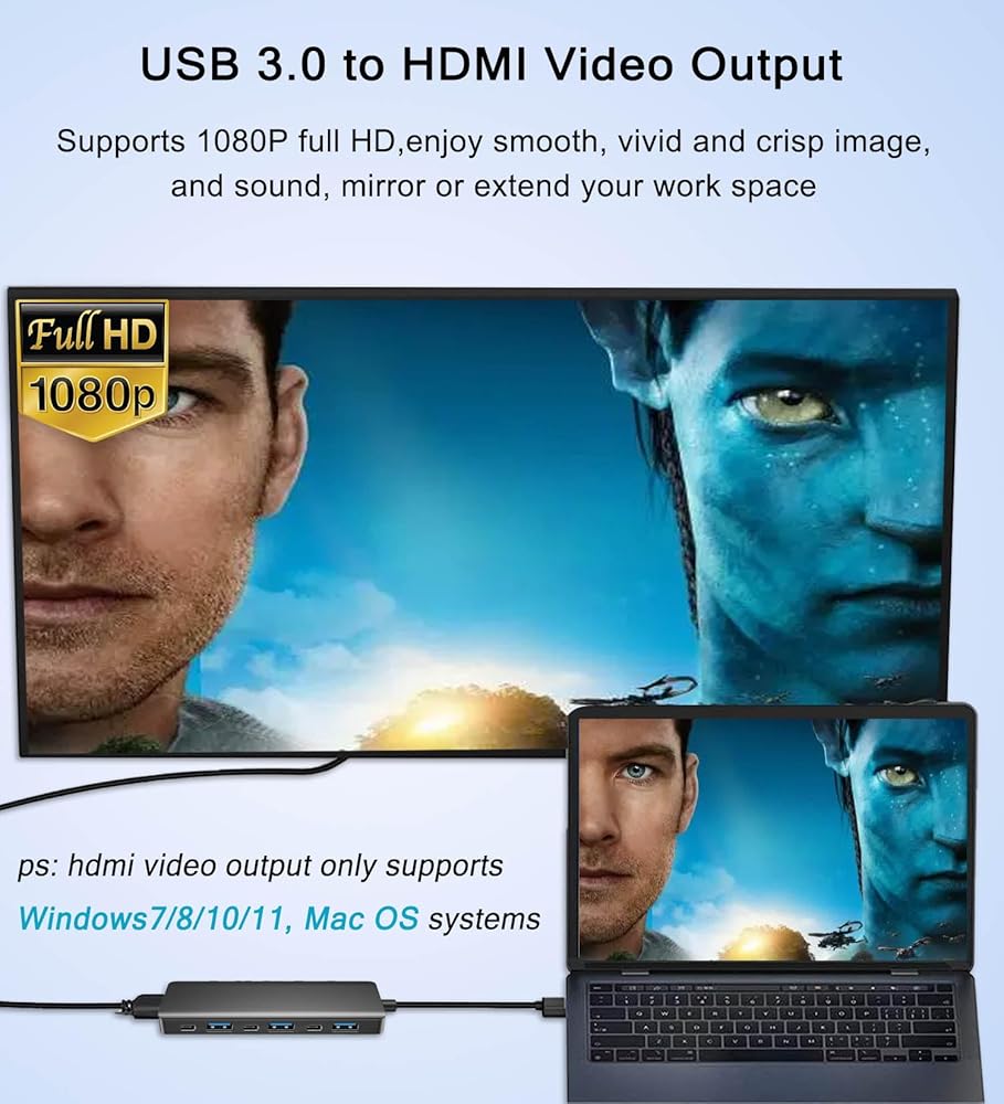 VIENON USB 3.0 to HDMI Adapter (7-in-1), USB 3.0 Hub with HDMI 1080P, USB Extender Docking Station for Monitor, PC, Laptop, Desktop Support Windows 7/8/10 & Mac OS