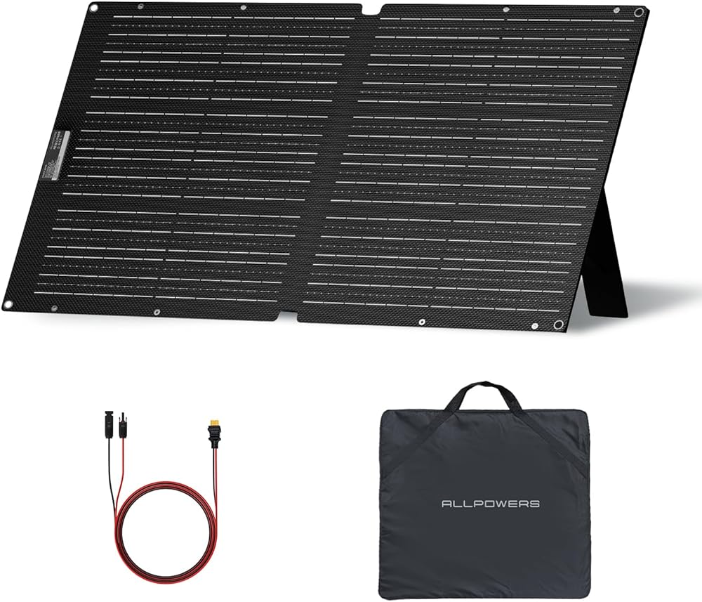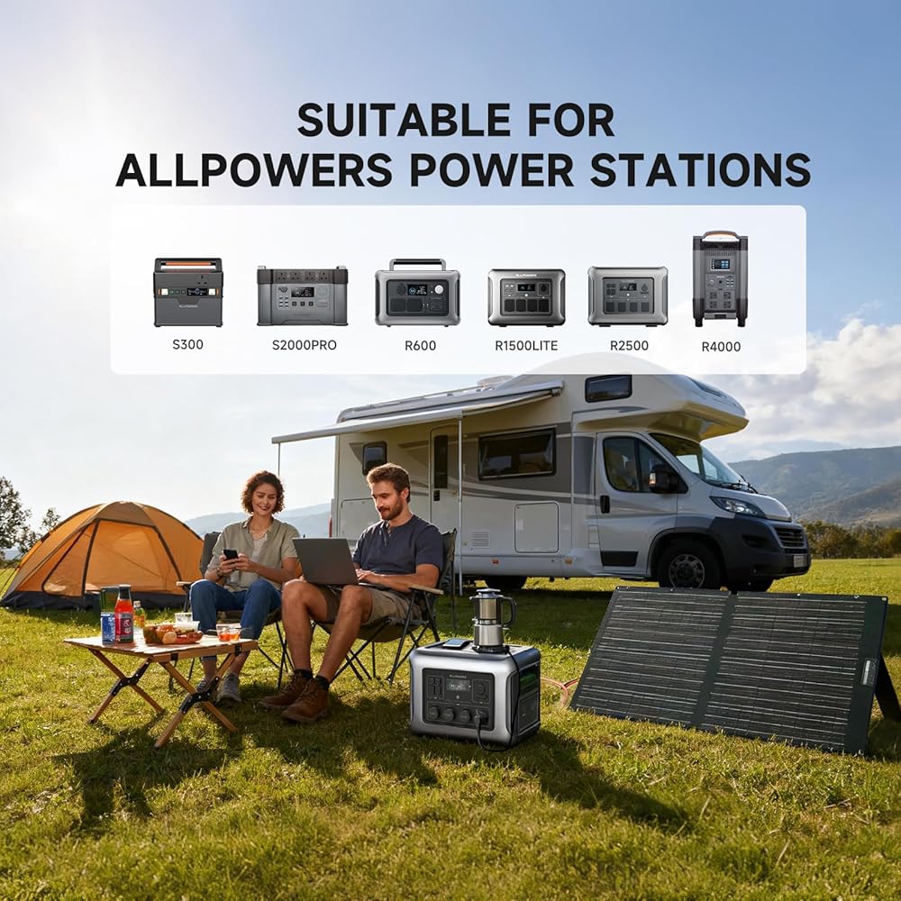 ▶【Foldable & Portable】: Folded size only 20x25.6x1.2inch, 7.9lb, portable solar panel 100W is great for traveling off the beaten path without access to electricity and won't take up much room in your bag. ALLPOWERS foldable solar charger features 1*MC-4 output(25A max), providing endless power for laptop, power station in camping, outdoor, garden, motorhome, and caravan under the sun.