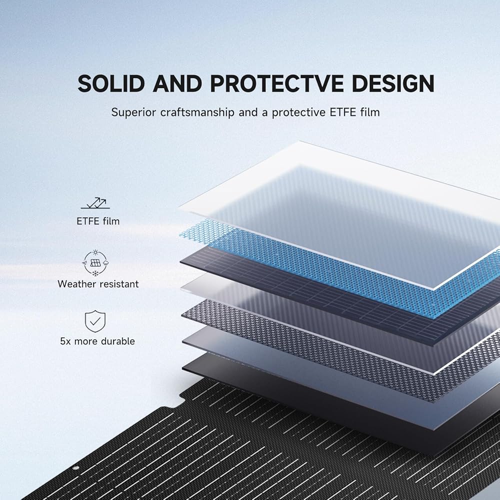 ▶【High Efficiency】: ALLPOWERS 100W portable solar panel kit is made from the US, up to 22% efficiency, 1/3 lighter than the same power of solar silicon. The total power increased by 1/3 in comparison with the same portable solar panel kit size.