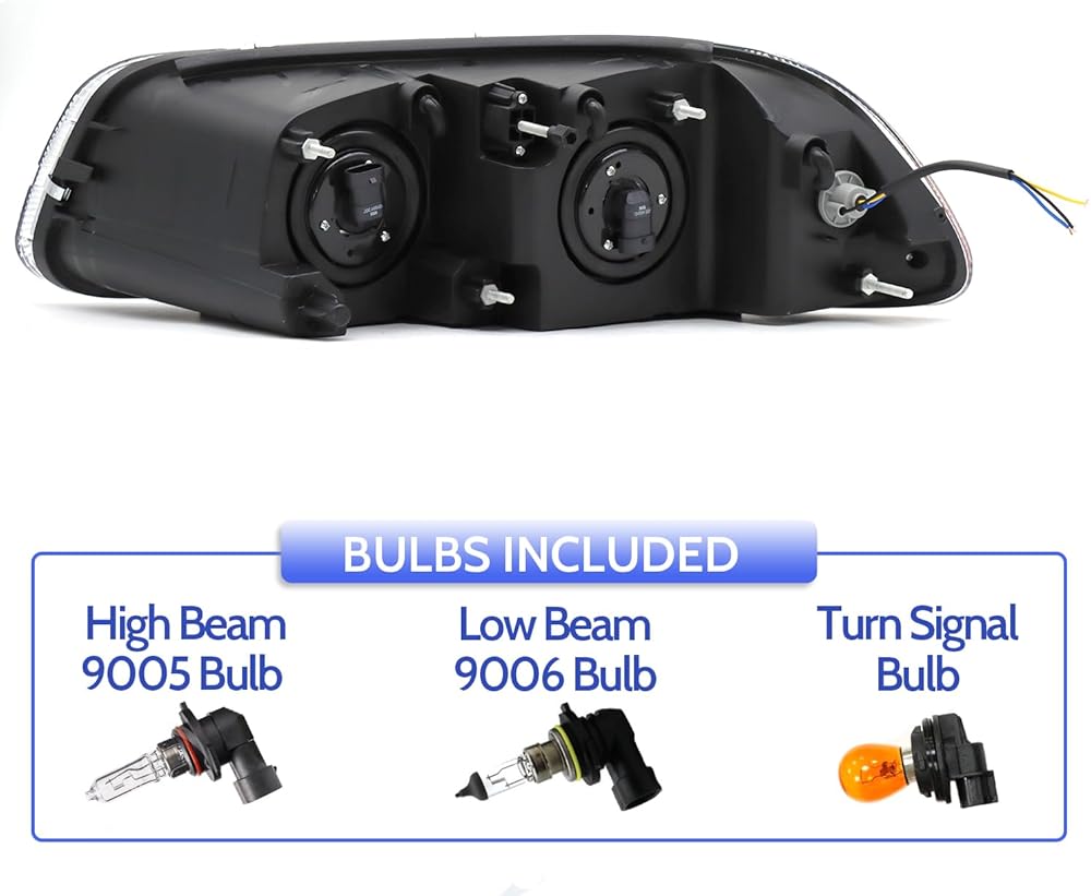 【PRODUCT INCLUDE】 A Pair of headlight assembly (Left/Driver & Right/Passenger Side).High/Low Beam:9005/9006.Bulbs Included.