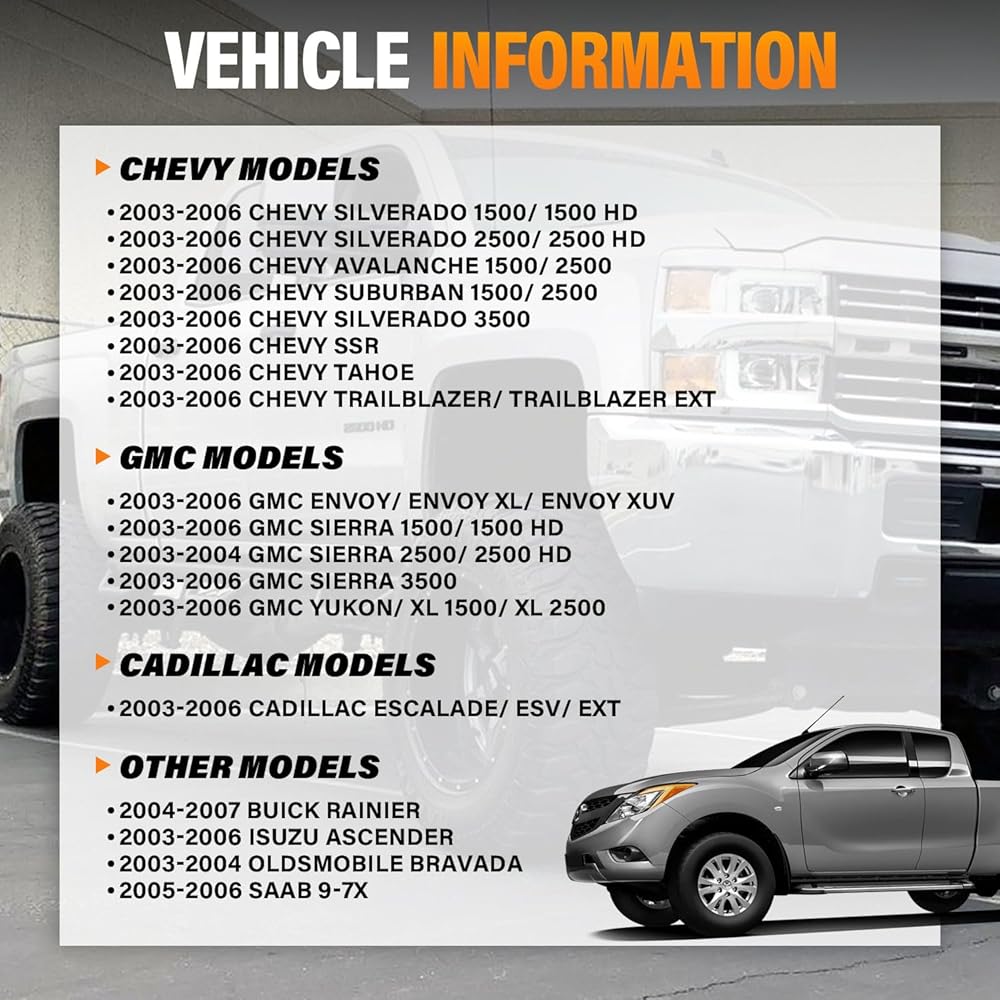 【Compatible with GMC】: AC Blower motor resistor compatible with GMC 2003-2006 GMC Envoy, Envoy XL, Envoy XUV ll 2003-2006 Sierra 1500, 1500 HD, 3500 ll 2003-2004 Sierra 2500, 2500 HD ll 2003-2006 Yukon, XL 1500, XL 2500. Please see the details page for more models.