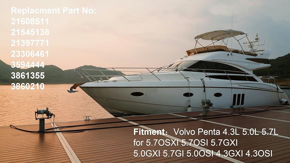 Compatible With: Volvo Penta including 21608511, 21545138, 3594444, 213977771, 3861355, 23306461 and 3860210, ensuring perfect compatibility with a variety of Volvo Penta marine engine models such as 4.3L, 5.0L, and 5.7L displacements including 4.3OSI, 4.3GXI, 5.0OSI, 5.0GXI, 5.7GI, 5.7GXI, 5.7OSI, and 5.7OSXI.