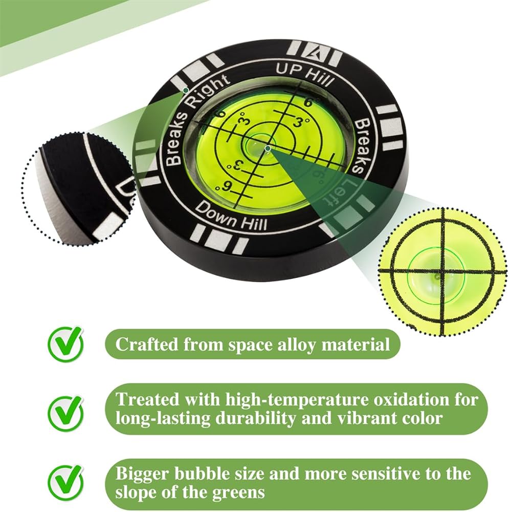 Precise Green Reading: The green reader boasts a green background, sensitive bubbles, and a clear scale, ensuring high-precision green reading every time. Its metal construction makes it ideal for various putting green surfaces, and its more accurate slope judgment will lead to fewer strokes when you're on the course or during training.