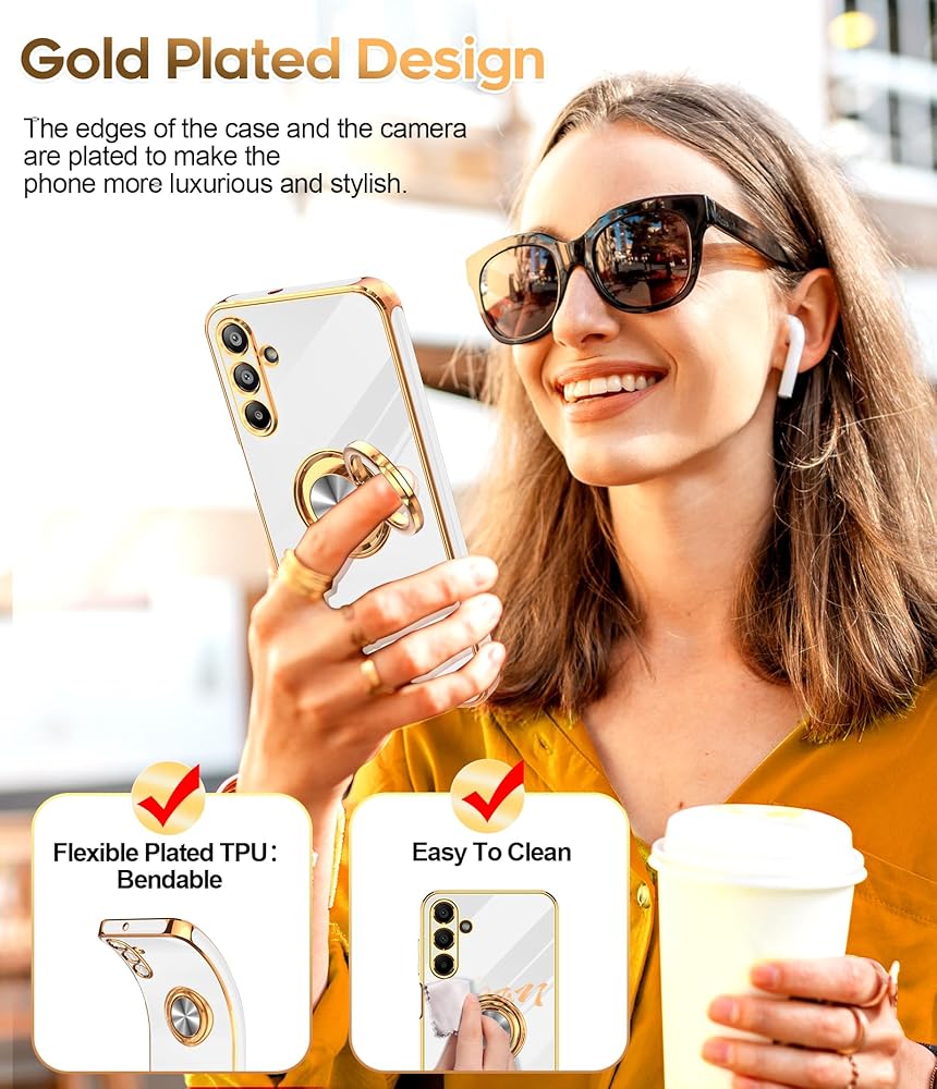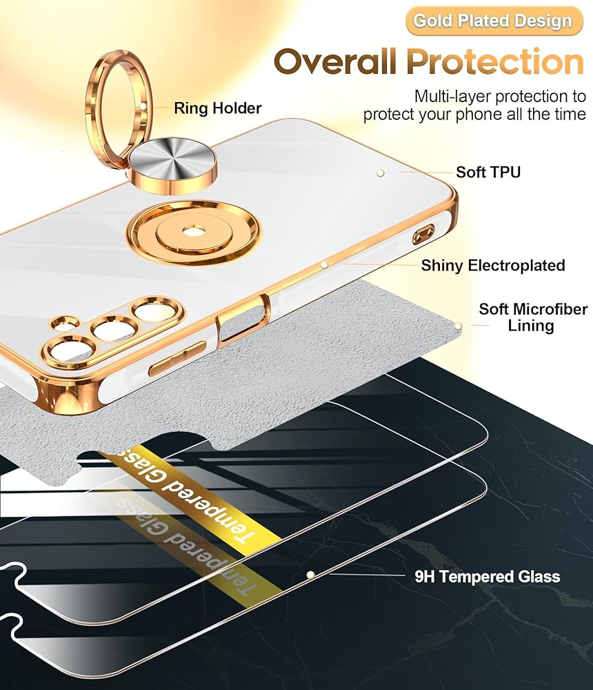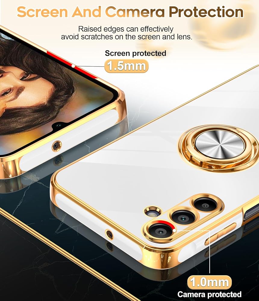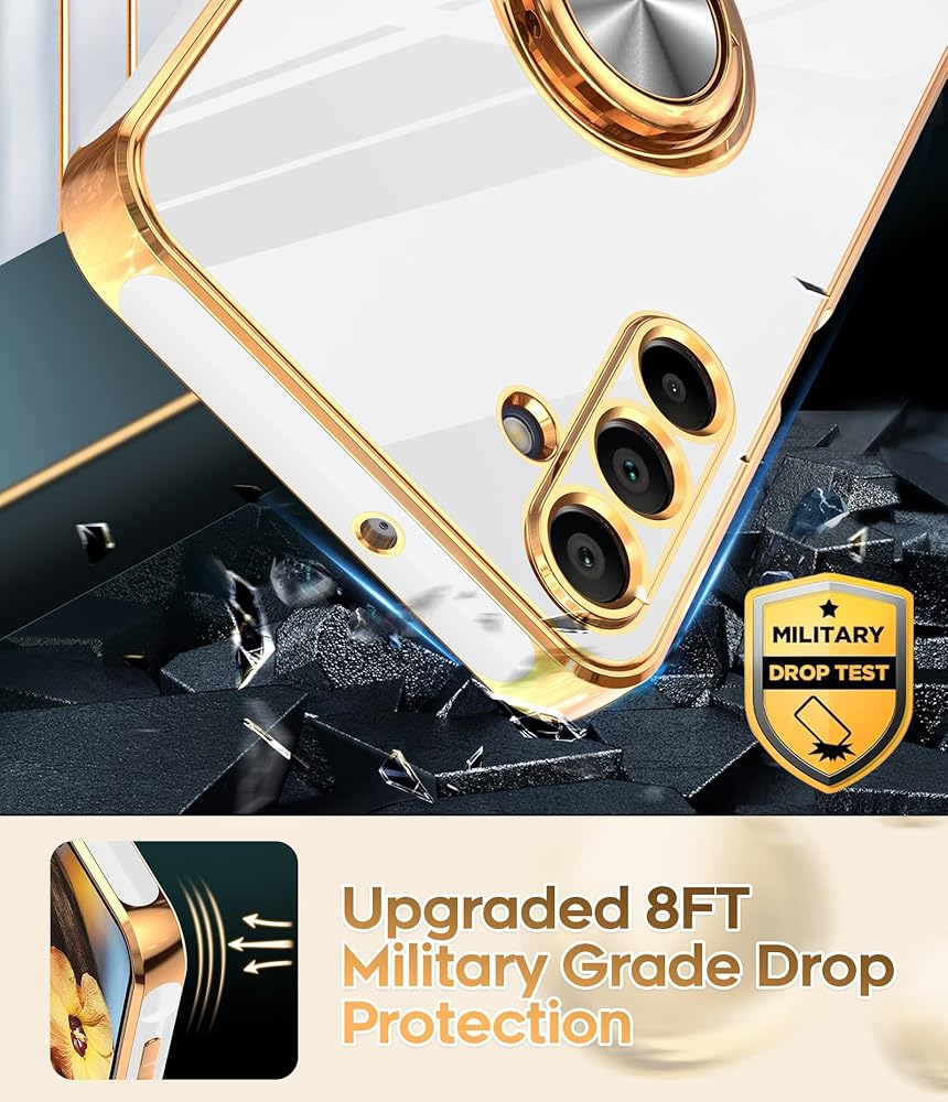 【Gold Plated Design】The edge of the shell bumper and the edge of the camera are plated, and the gold plating all around makes the phone full of luxury, slim and lightweight, not bulky, and easy to hold.