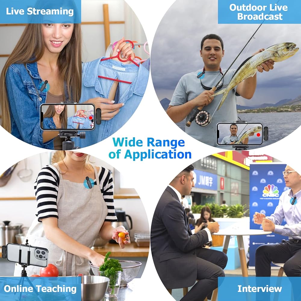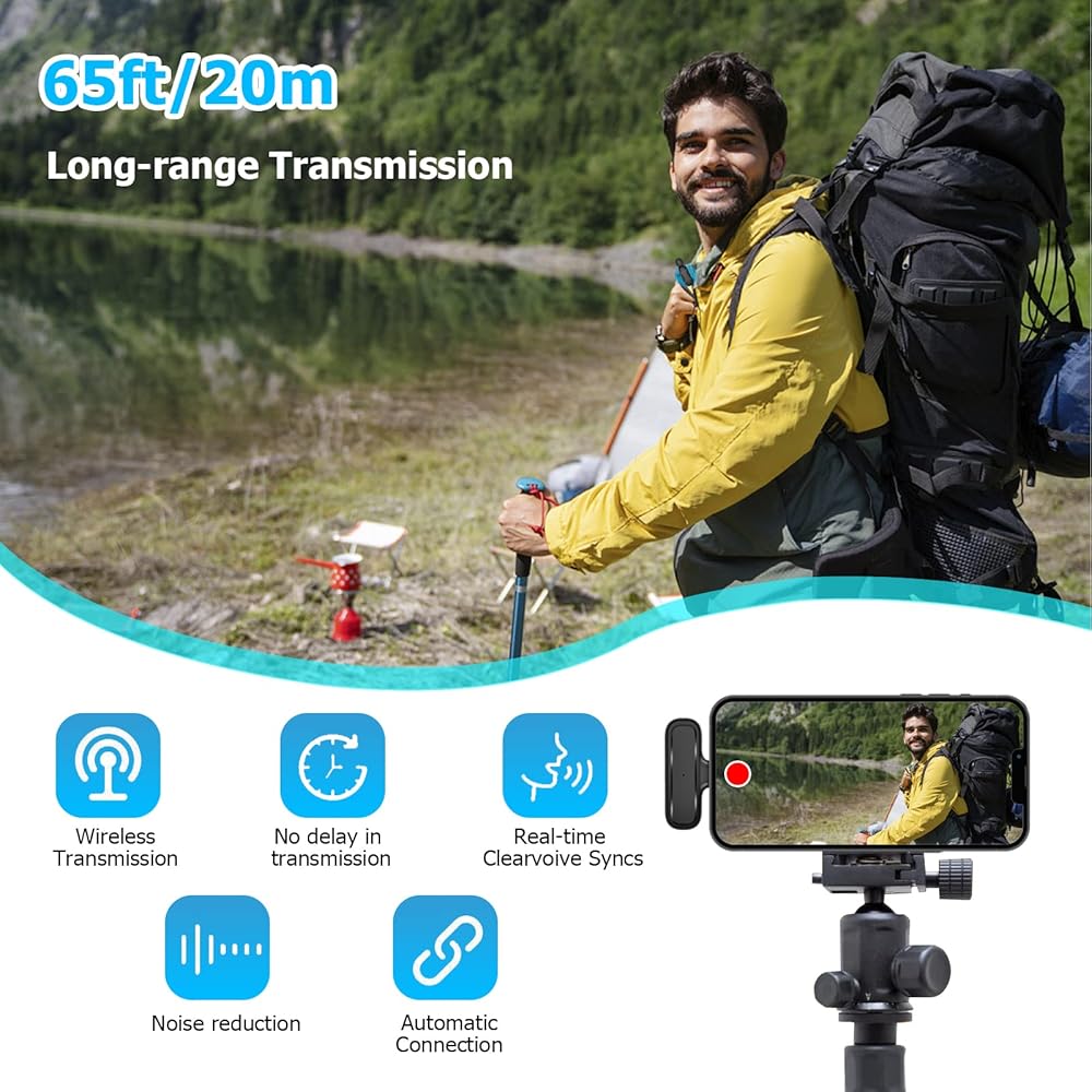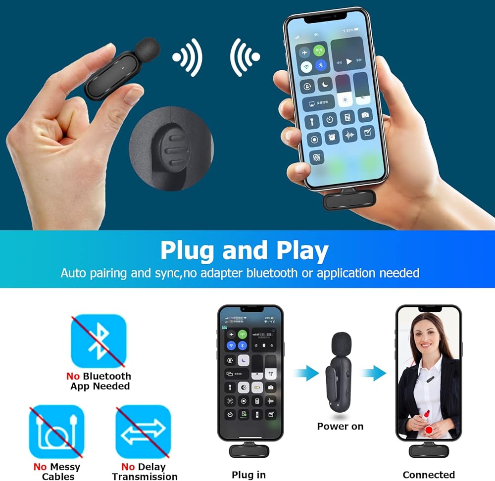 【Plug and Play】No Bluetooth,No any APP needed.Simply remove the mic from its case,plug in the receiver to the bottom of your phone,clip on the mics,and you're ready to start recording.2 Pack microphones allow two people to record videos together. Provide efficiency and convenience for team members.Very suitable for for video blogs,interviews,live broadcasts,YouTube videos,TikToks, podcasts,Instagram stories,online video tutorials,short films,or out of the box.