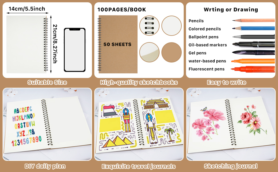 📒High Quality Material: Our blank spiral notebook cover is made of thick kraft paper with good quality, 80gsm thick inner pages are smooth to the touch, no leakage, suitable for pencils, pens, colored pencils, oil pastels.