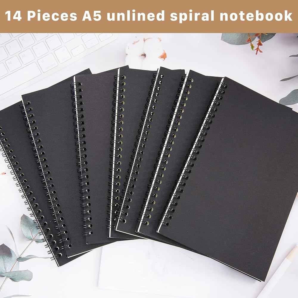 📒A5 Unlined Spiral Notebook Set: A pack of 14 kraft paper-covered drawing notebooks, each sans-lined notebook has 100 Pages/ 50 Sheets blank inner pages and sans-serif pages, enough for use. If you are any dissatisfied with unlined spiral notebook, please feel free to contact us, we will provide return, exchange and refund service for free.
