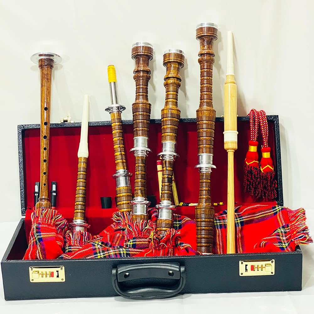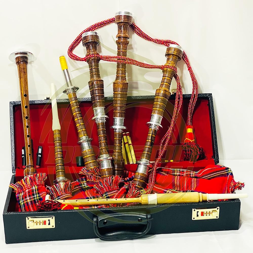 • Great Highland Scottish Bagpipe Rosewood Natural Finish Royal Stewart Cover with Hard Case.